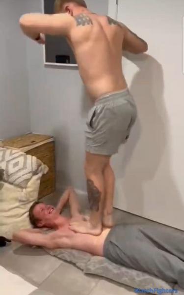 Leone is hit on the bed in the abs hard..All the punches land perfectly on his abs...