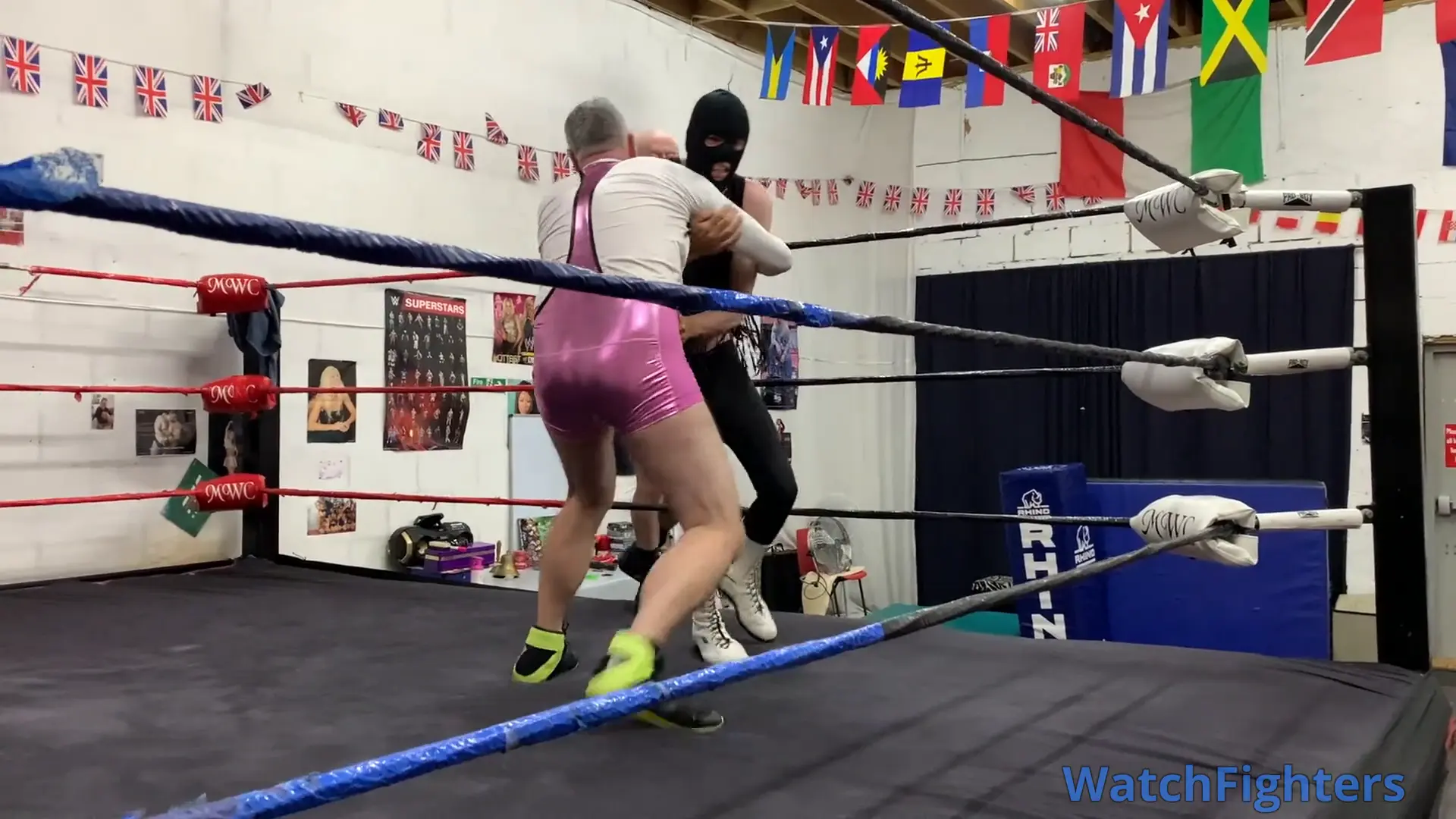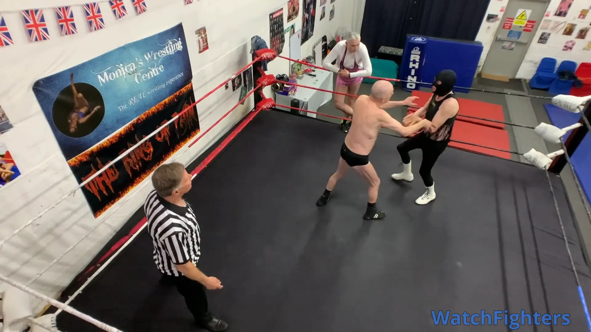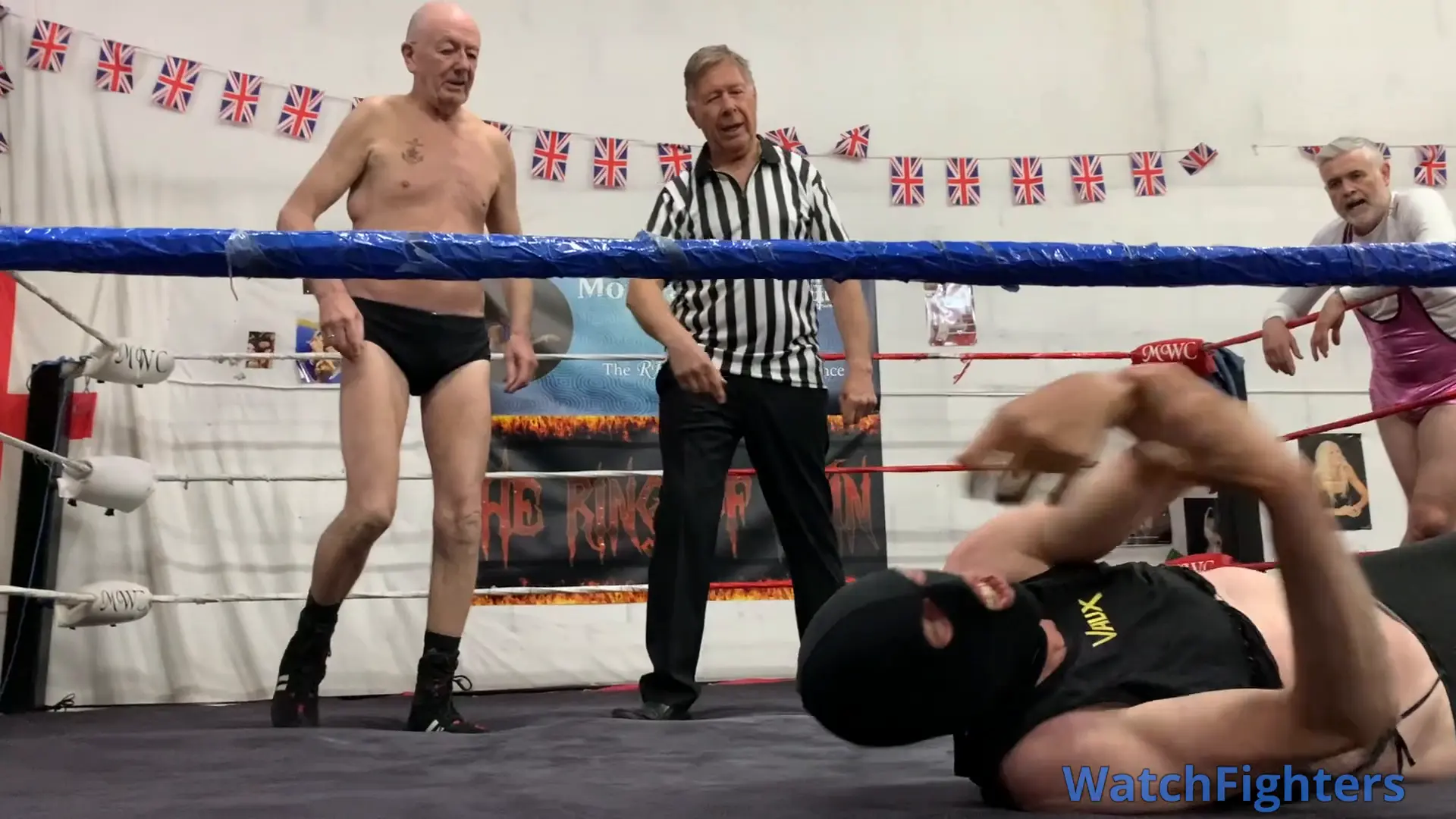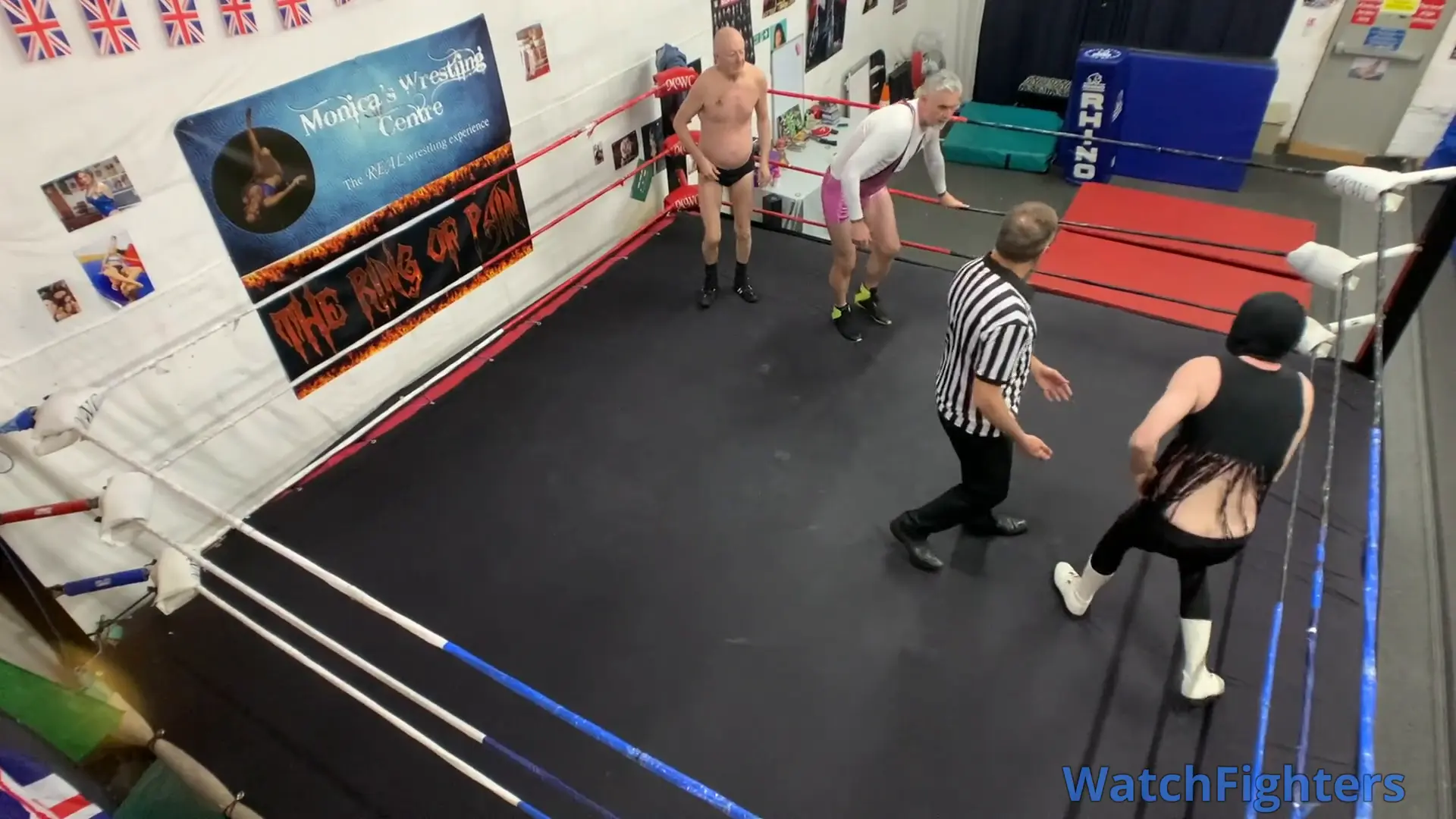 Action from a pro style wrestling handicap (2v1) match featuring Swamp v Den & Subby Steve held at MWC London.
