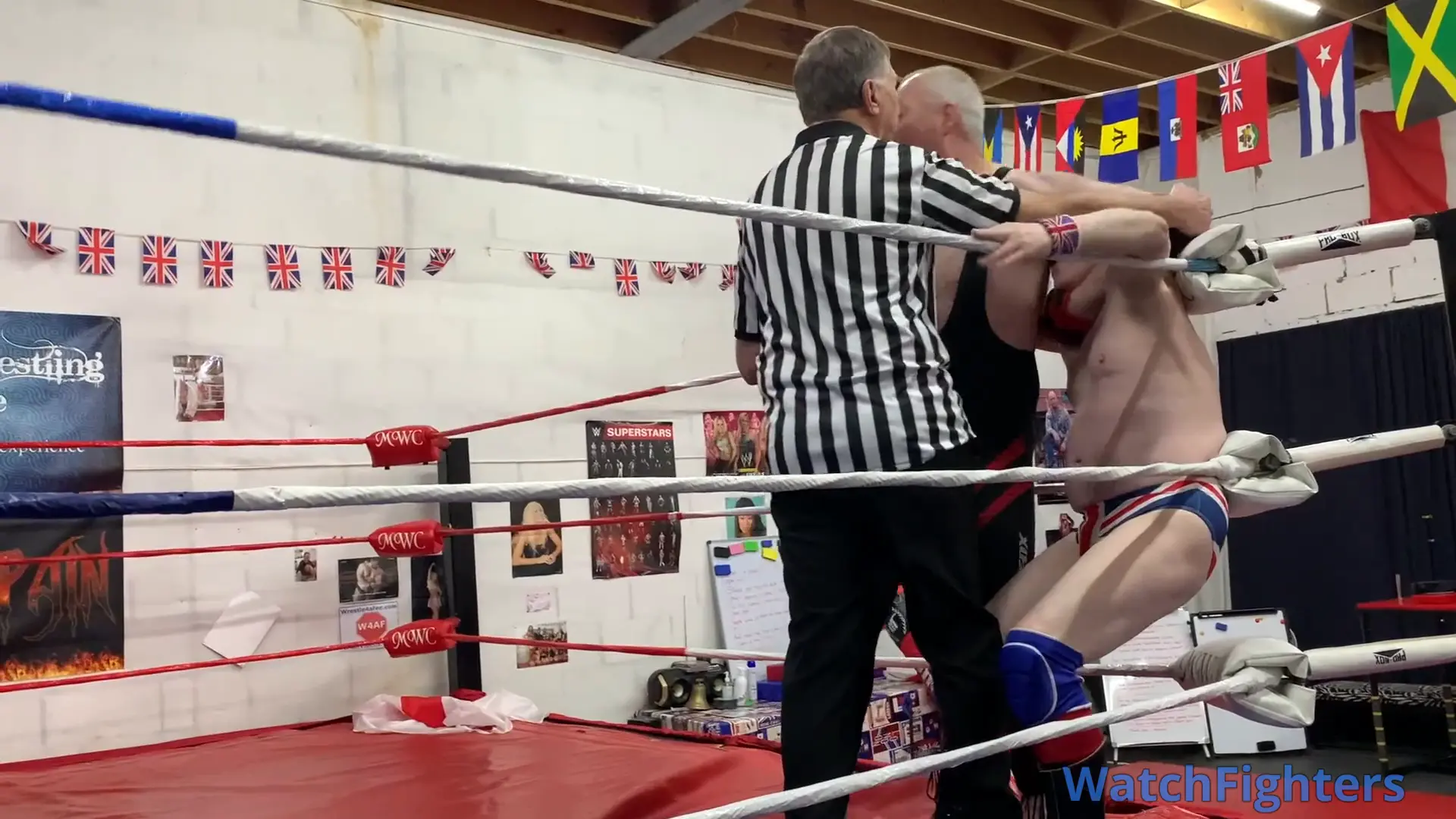 Action from a World of Sport pro style wrestling match (one submission deciding the winner) featuring Roger Ripper v Stephen held at MWC London.