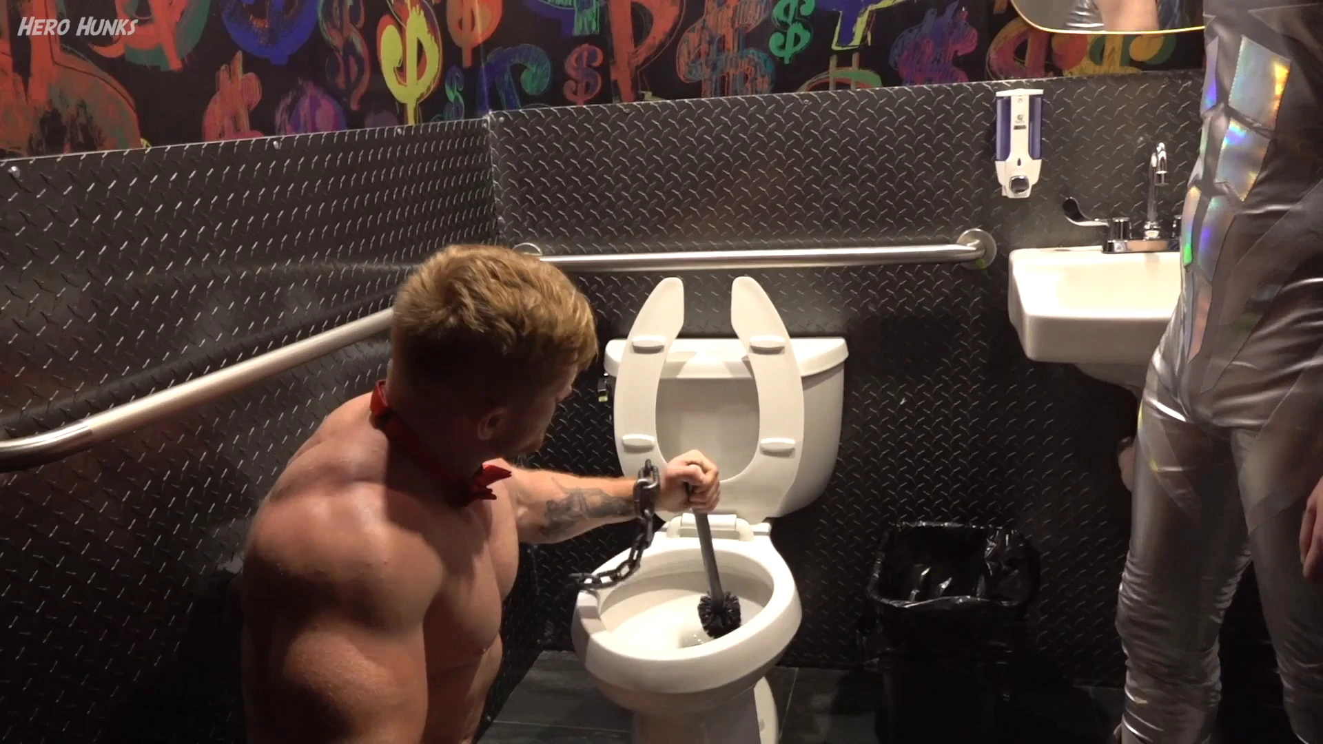 Mastermind isn't just about physical control, he wants full control and he lets Ruby Flex know who his new boss is. He has Ruby Flex kneeling on the dirty bathroom floor, scrubbing toilets as he berates him then he's made to mop the floors of the lair while Mastermind kicks back on the couch to watch the stud. The final chore for the controlled hero - a nice massage for the evil villain at the strong hands of his new submissive toy.