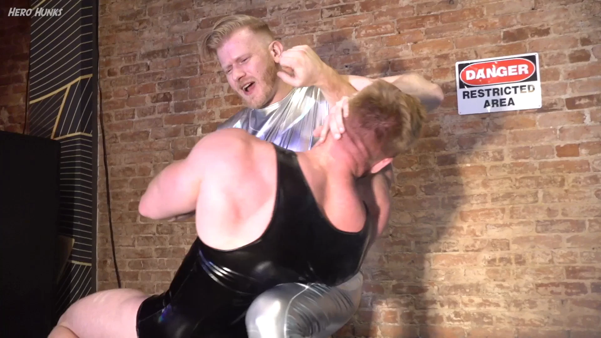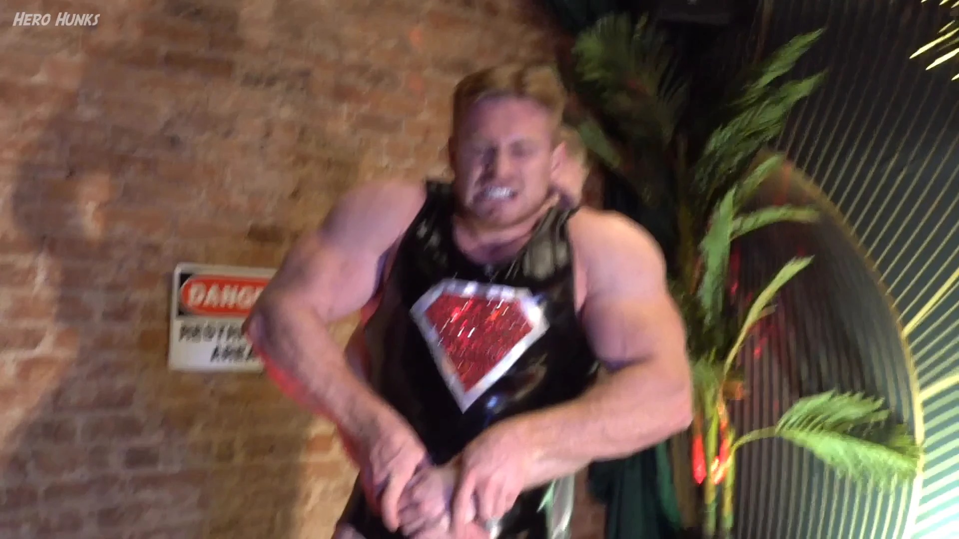 Mastermind is in complete control and makes Ruby Flex worship his body and biceps. He has more up his sleeve as he drags the hero off camera to a wall of chains. Working over the shredded abs, nipples and the groin of our hero.