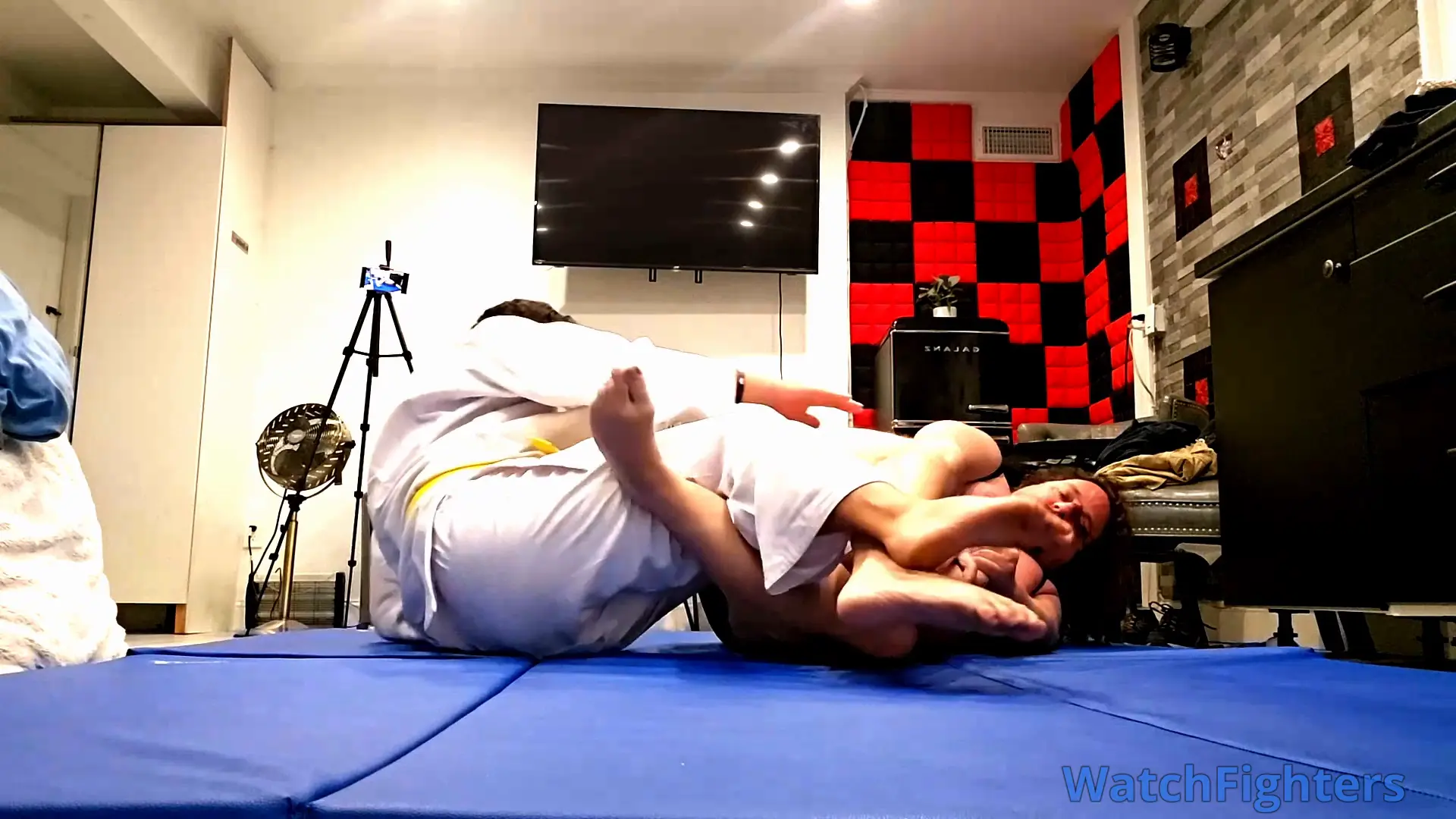 This match is in two parts, first we start out sparring in his gi vs. my sexy mesh black man-bikini. Soon his own yellow belt is my discipline tool. And then he gets more lessons in man to man combat.