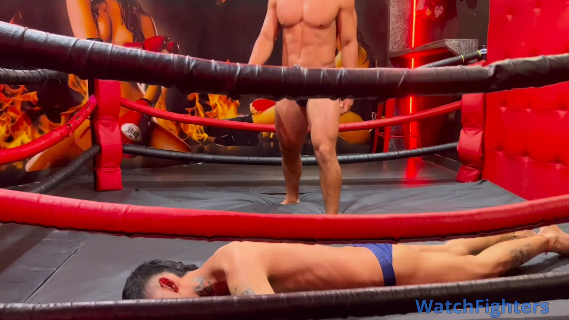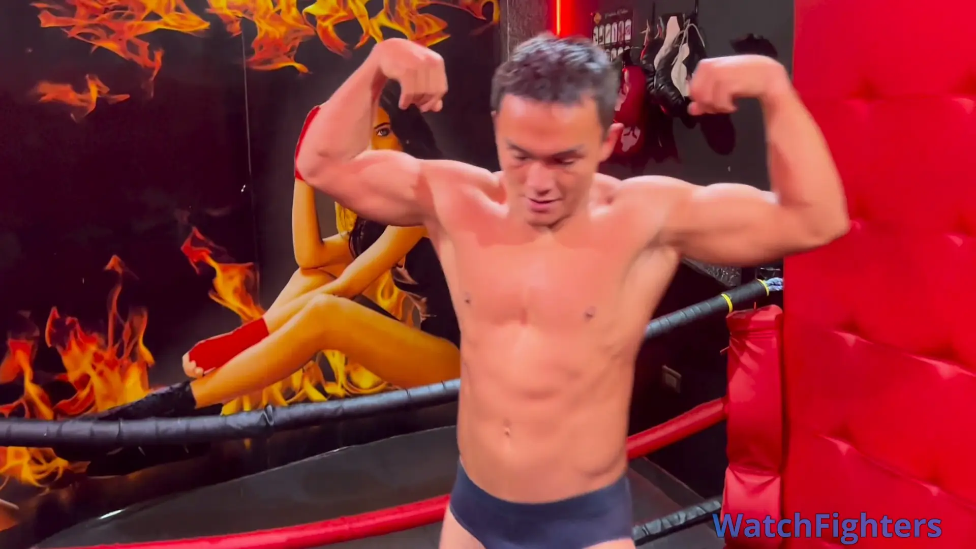 the muscular lui kan punishes the slim ryan but the latter does not want to lose the fight.