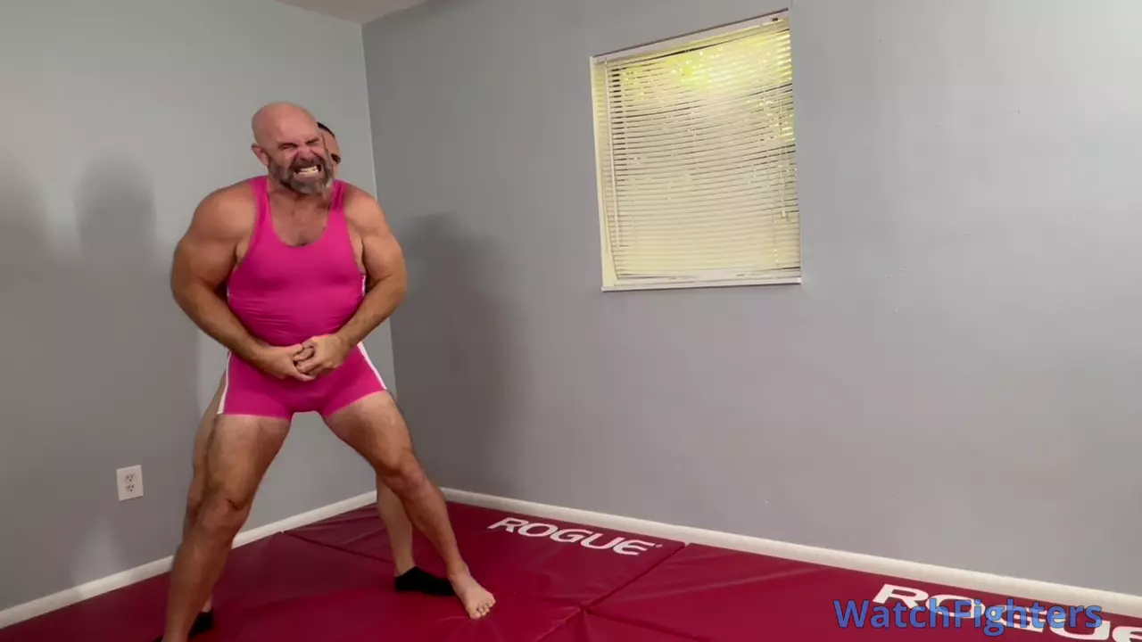This mat room ain’t big enough for two men to wear pink. Neither one of us is thrilled with this and Tarz takes it upon himself to strip Ricky down to his g string…only one can wear pink in this mat room encounter.
