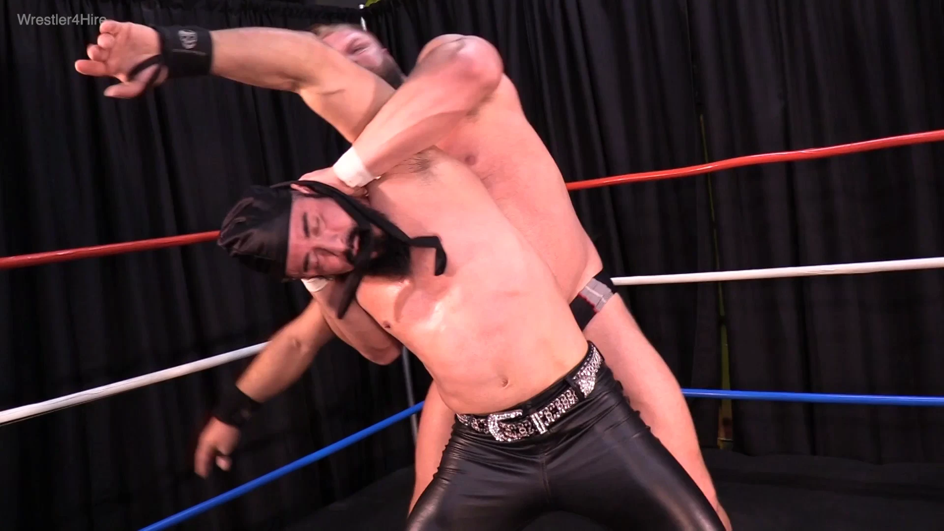 Early in the bout, Kris finds himself on the receiving end of a wicked headlock and on his knees after succumbing to a test of strength. It is not until Kris decides to employ some "less than legal" ways that he manages to get the big man off his feet.