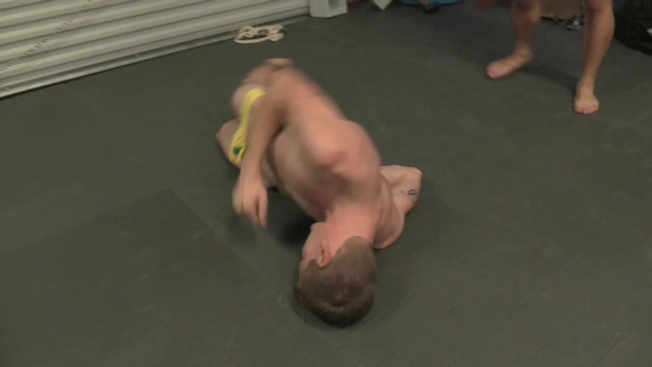 Dashing Dustin looks out of place next to Christian Thorn. Sure, both dudes are young and confident, but only Thorn has the musculature of an impossibly hot comic book hero. The initial tie-up results in Dustin getting thrown. But amazing, the slimmer dude leaps to his feet to take down Thorn!