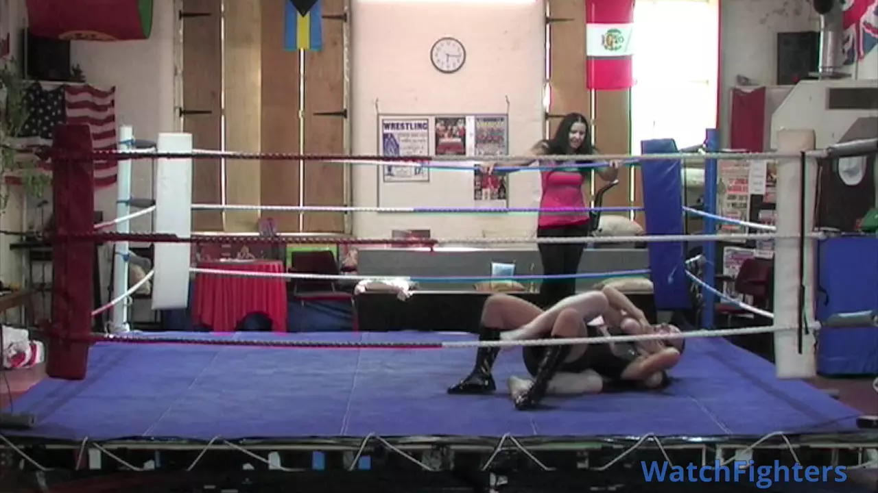 Action from a mixed wrestling match featuring Pippa v Stephen held at The Wrestling Factory, Manchester.