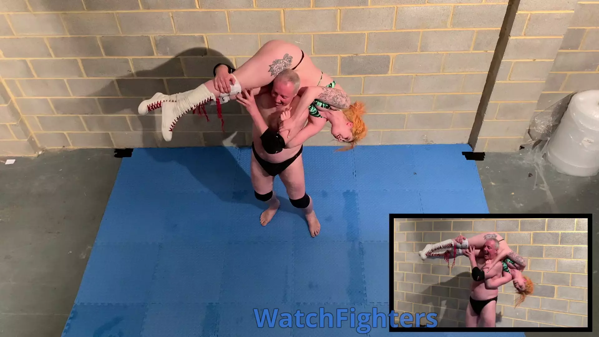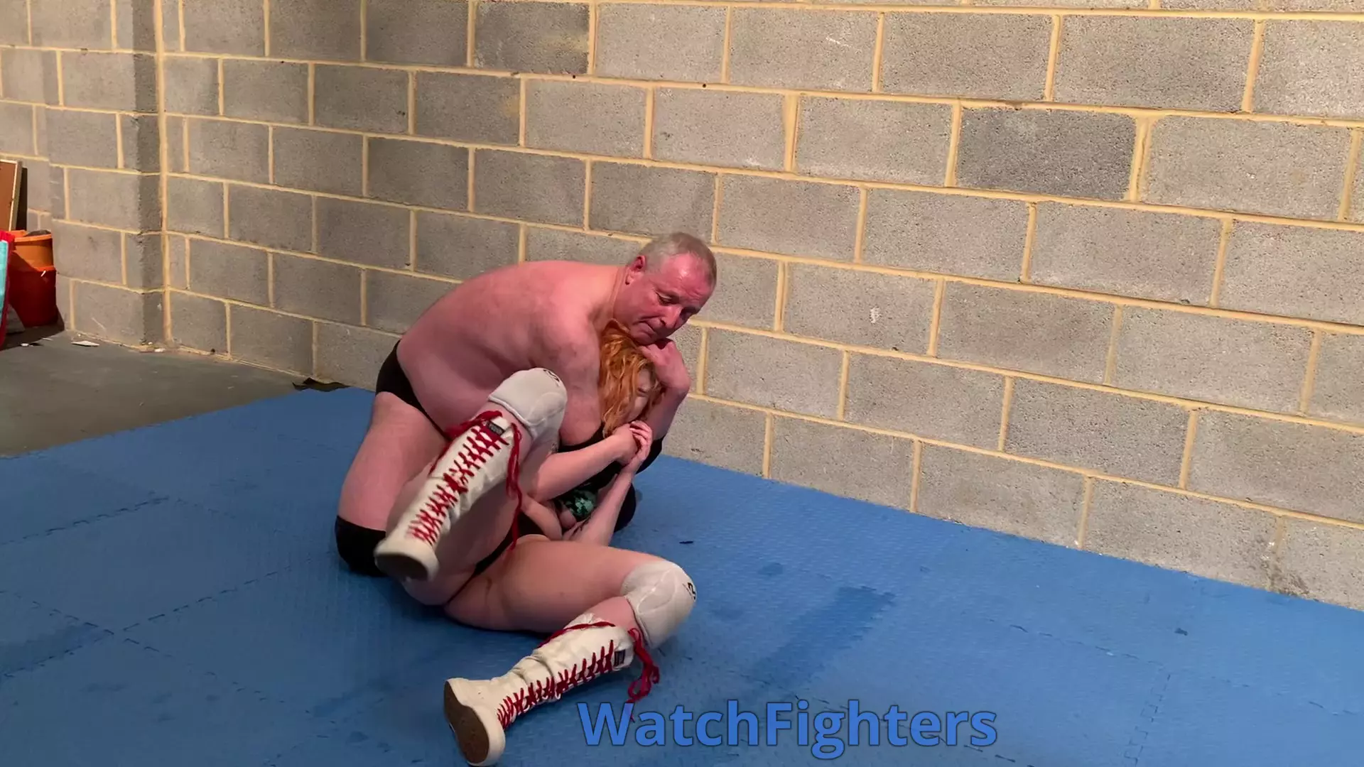Action from a mixed wrestling match featuring Rosie Gia v Stephen held at BH7.