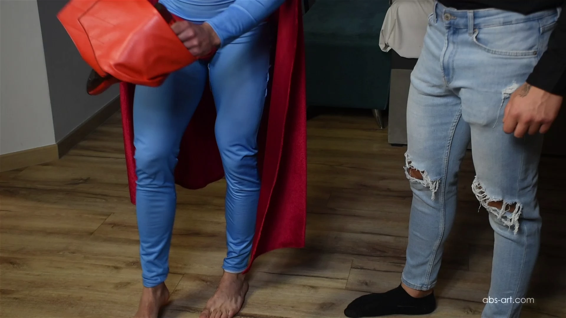 Bruno - Super hero secret identity revealed - humiliating gutpunch and jerk off naked
