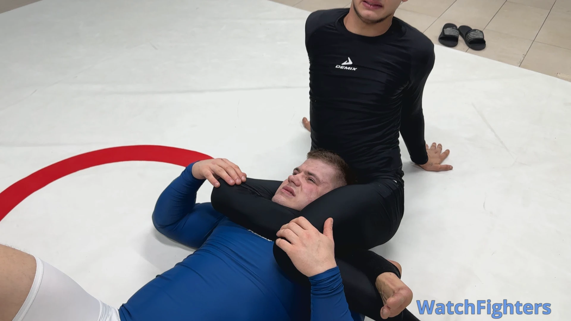 Richi thought his strength would be enough; however, Juni legs, like a snake, wrapped around his neck and slowly squeezed the air out of him