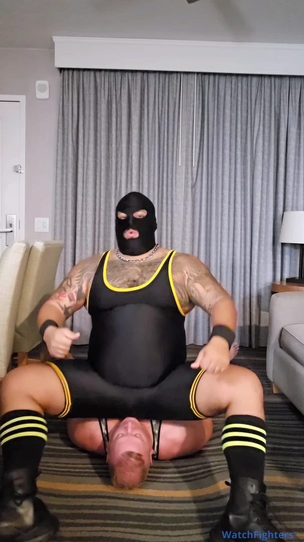 Only 3.5 minutes long, this 305lbs 6'3 Stud dominated me with all his weight on the hard floor.