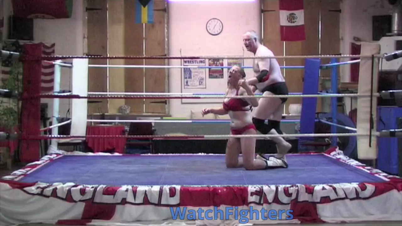 Action from the third and final in a series of three mixed wrestling matches (25min) featuring Shelby v Stephen, held at TWF Manchester.