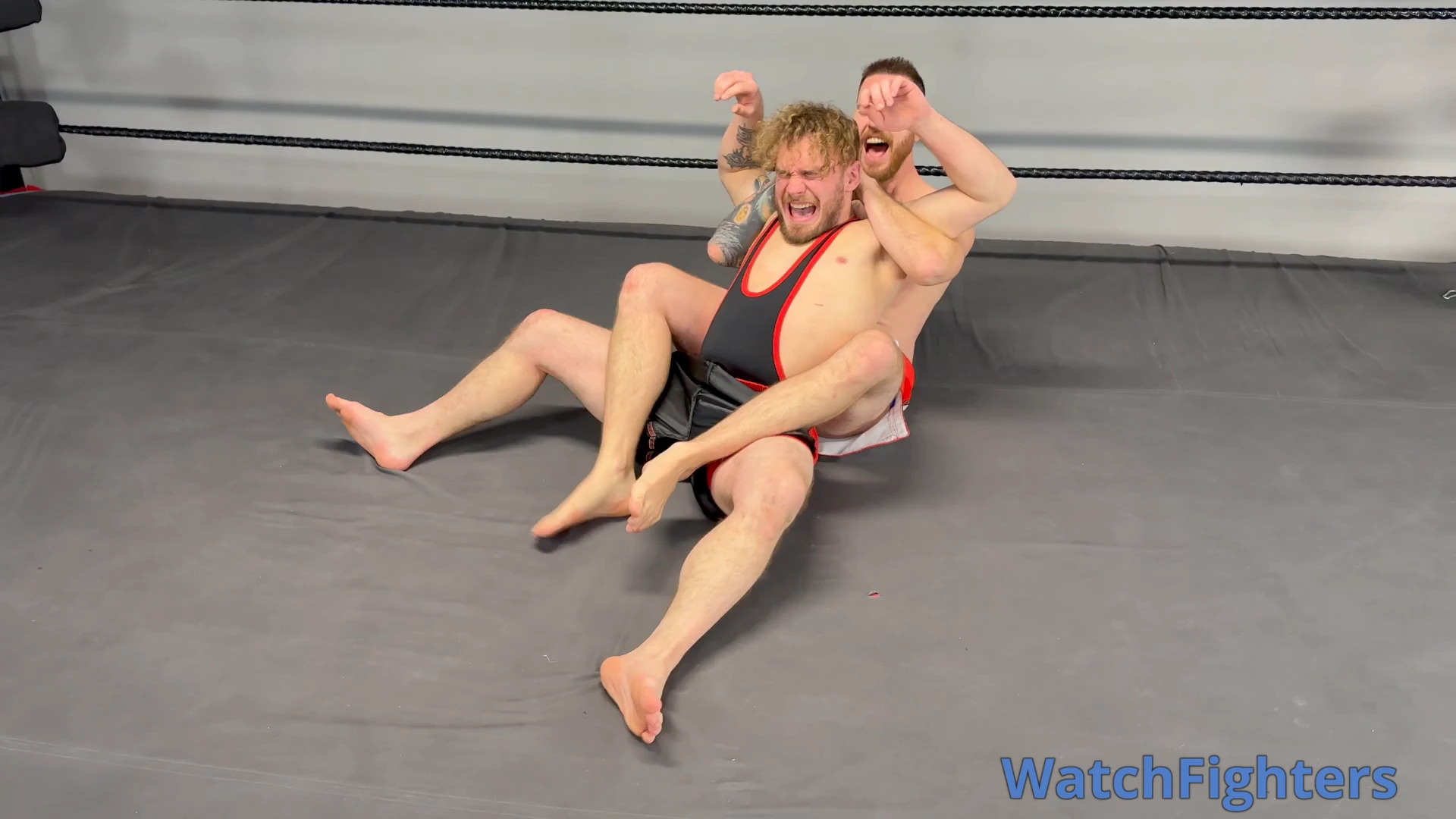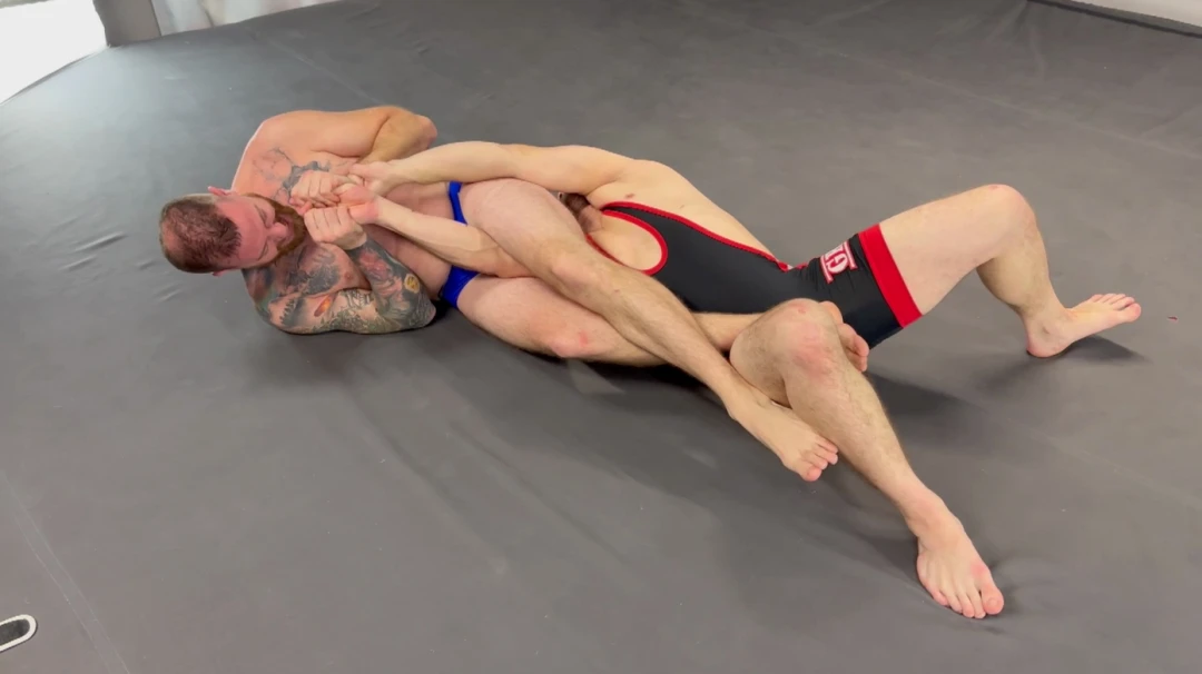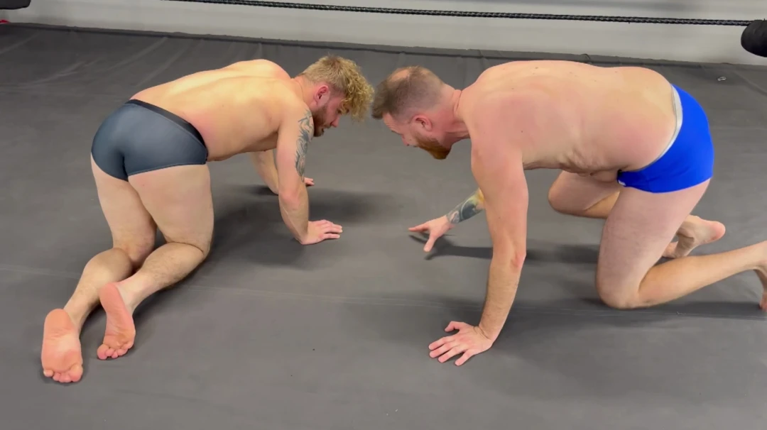 A strip fight wrestling custom between Aaron Hummer and pro wrestler Tornado. Tornado has a lot of pro wrestling experience and some MMA experience, but Aaron has been learning from some of the best. If you submit, you must strip! Both sexy guys end up down to their speedos, but the loser ends up in only his thong.