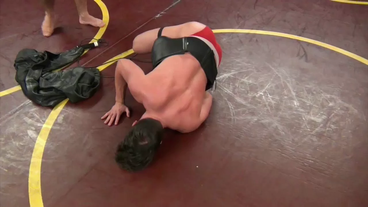 Boxing gear, an eight pound medicine ball, resistance bands, and more give this particular session an added interest, as big Genatto uses every part of his massive bod to batter this boy into submission.