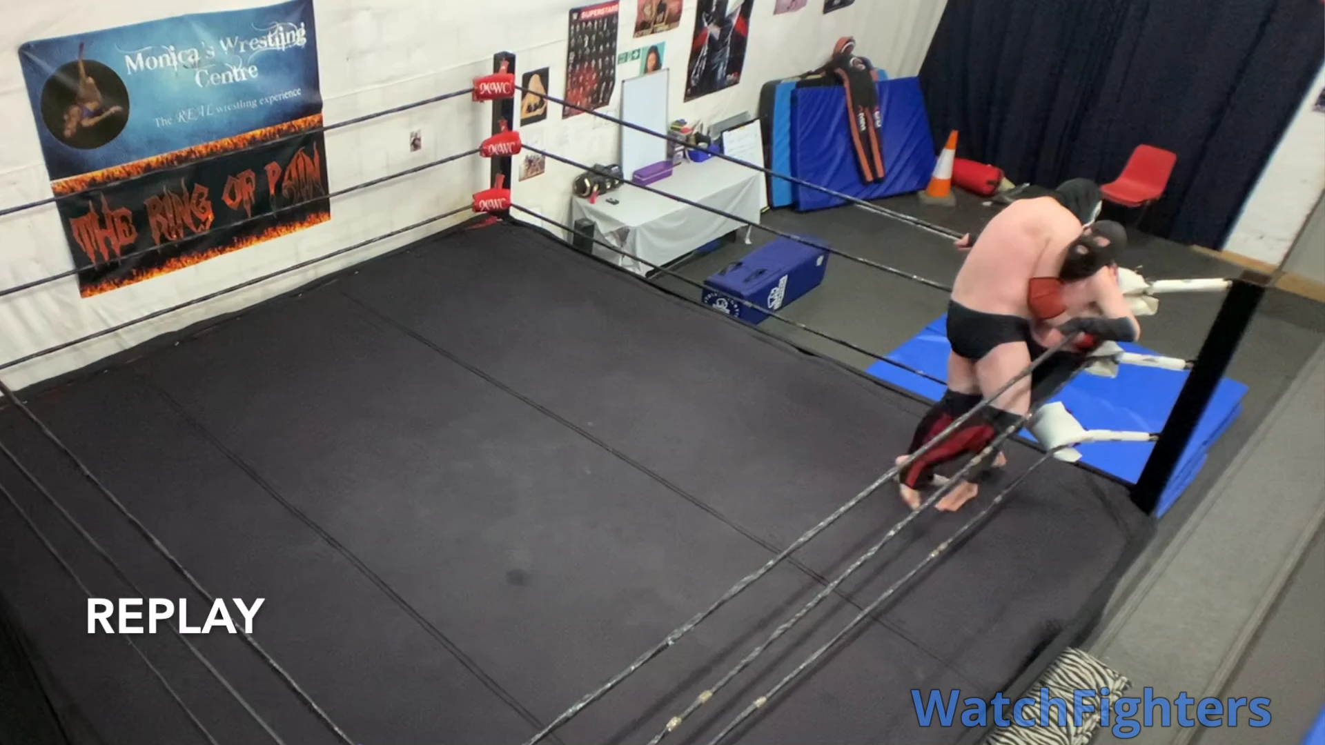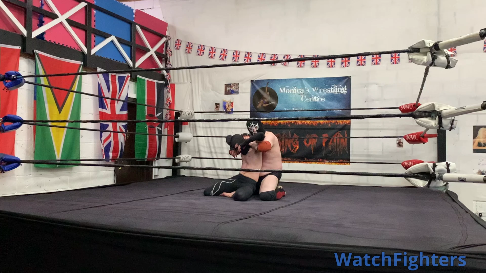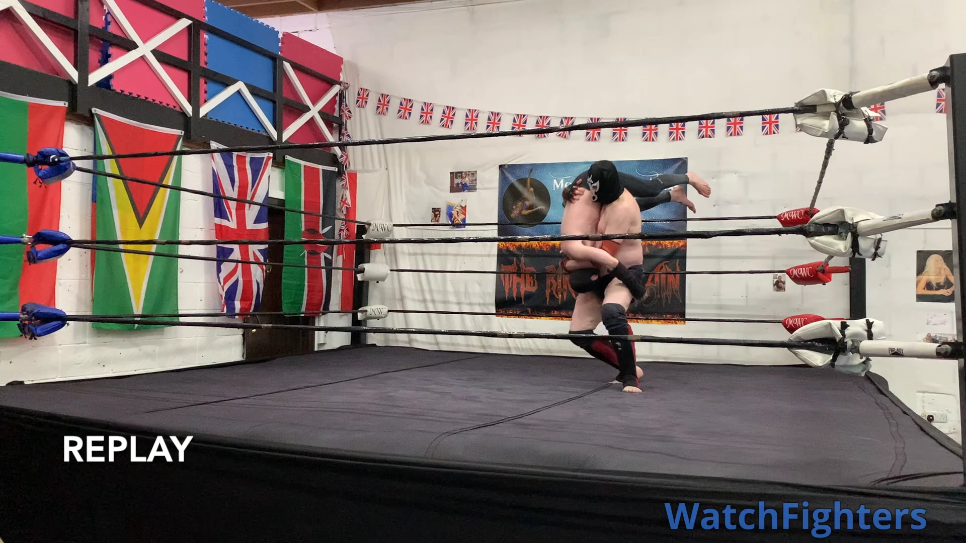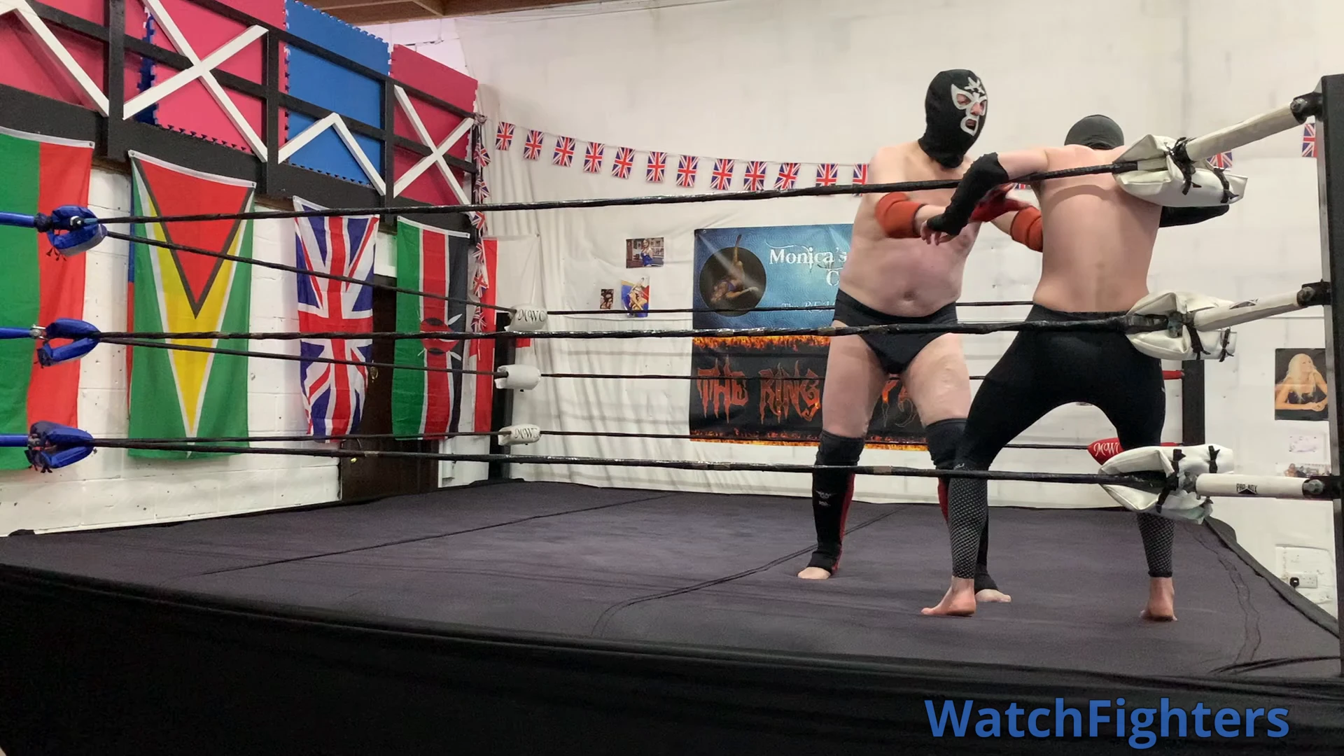Action from a pro style wrestling match featuring El Cachoro v Ghoul held at MWC London.