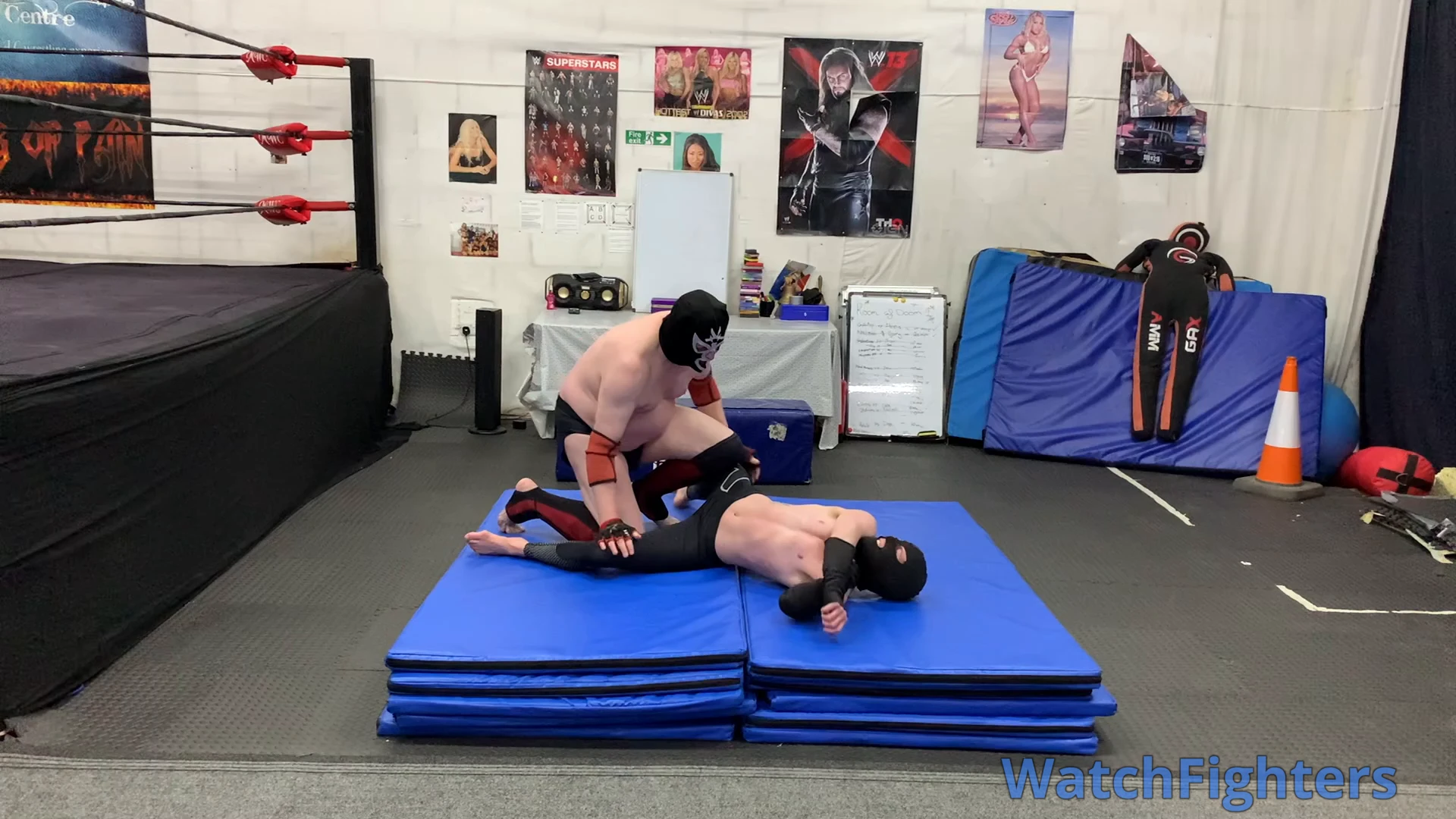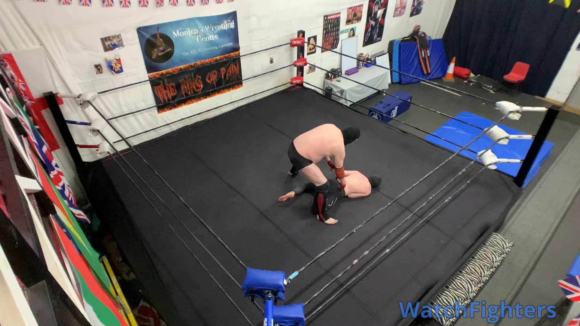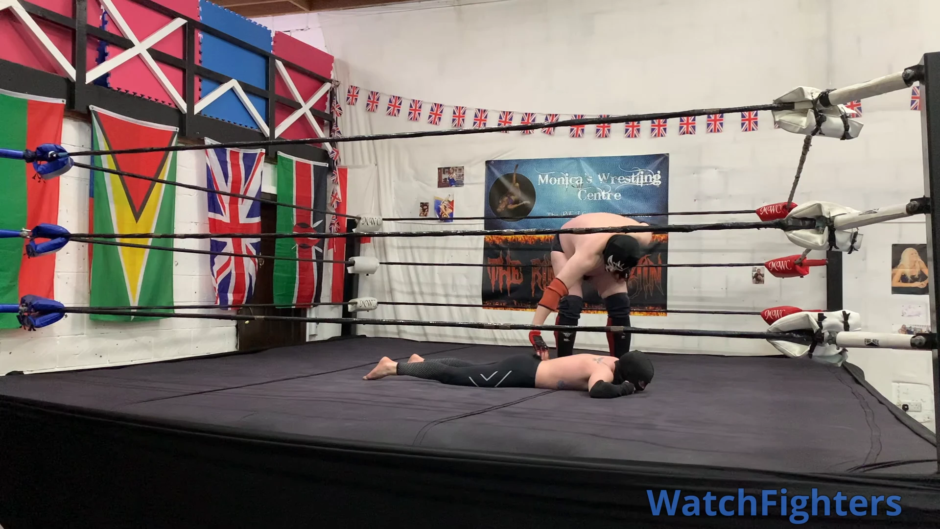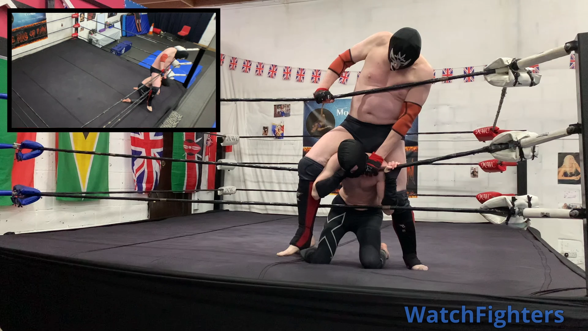 Action from a pro style wrestling match featuring El Cachoro v Ghoul held at MWC London.