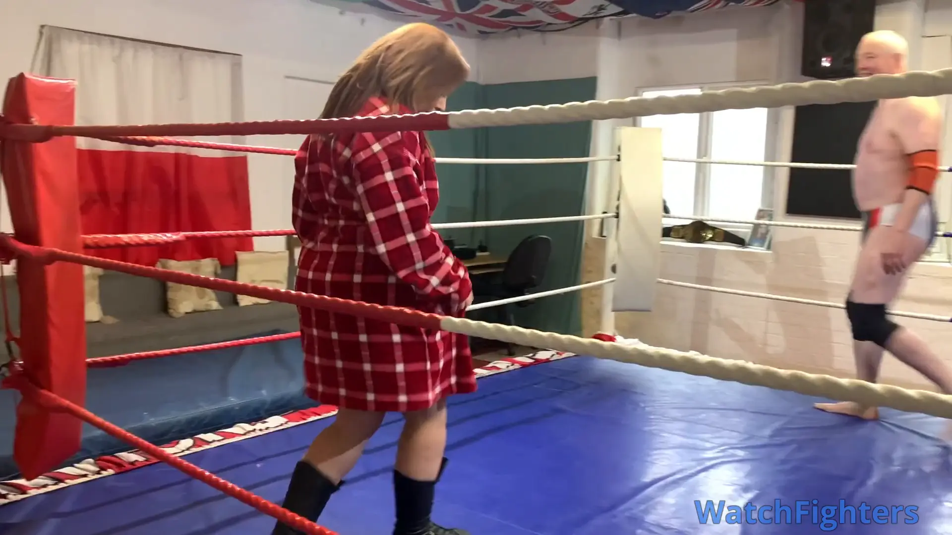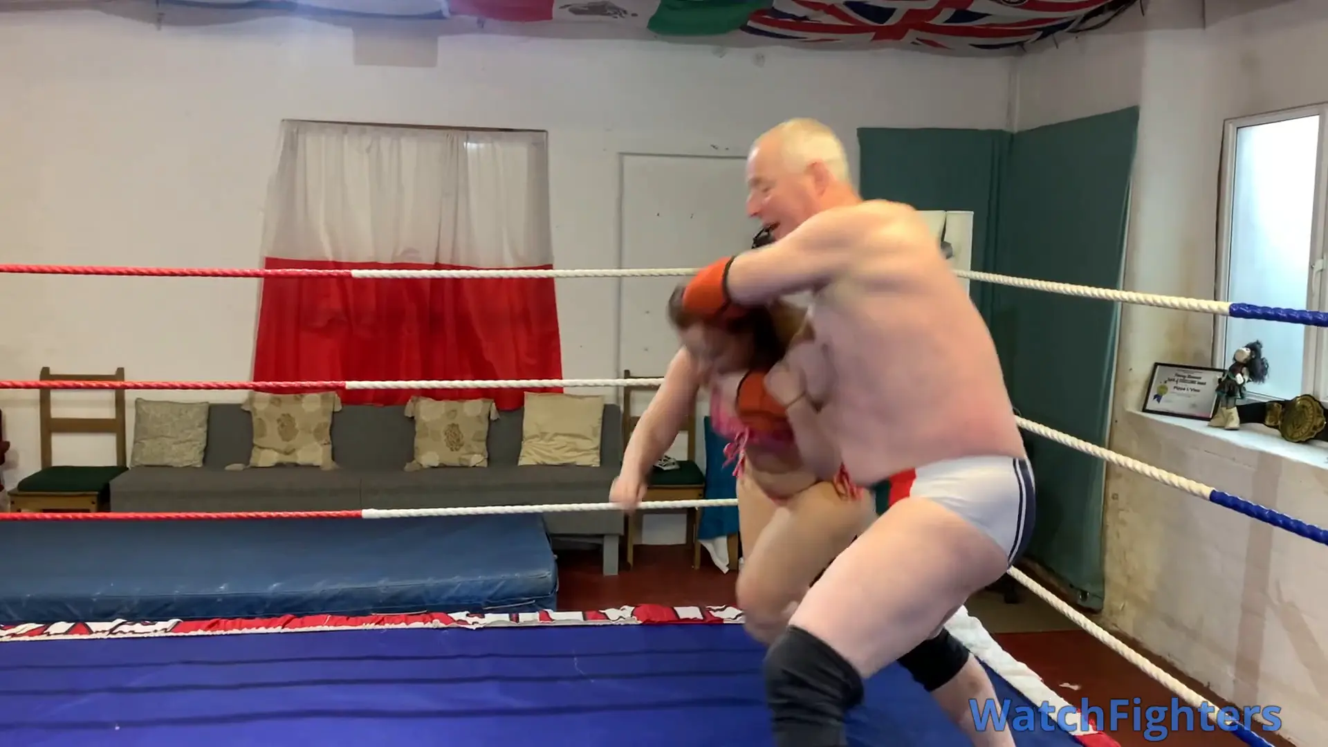 Action from a pro style mixed match featuring pro female wrestler Eva v Stephen held at TWF Manchester.