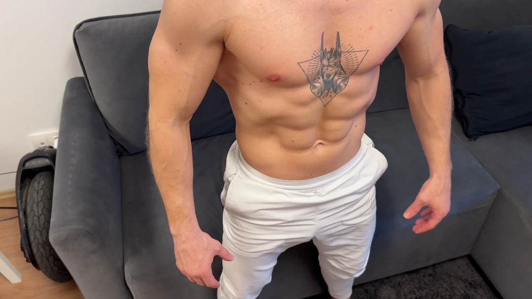 You spank his ass hard while he obeys like a puppet. Order him to sit and you tickle his feet and he has to giggle and laugh, You lay him on the couch, explore his body, finger his deep navel, stroke his cock, and finally order him to fuck his own belly button until he shoots a thick load right inside it.