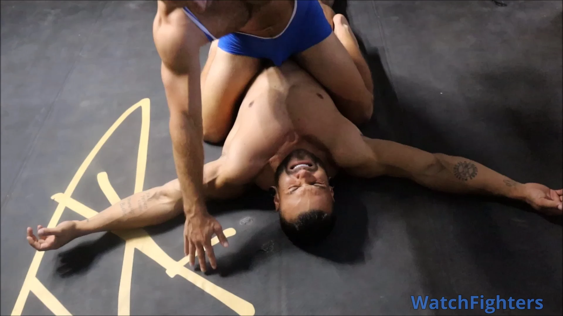 With Gato in silver squarecuts and Blayne in a sinful peekaboo singlet, the match starts. Blayne takes control early on, finding multiple ways to stretch and show off Gato's herculean body before winning a quick fall.