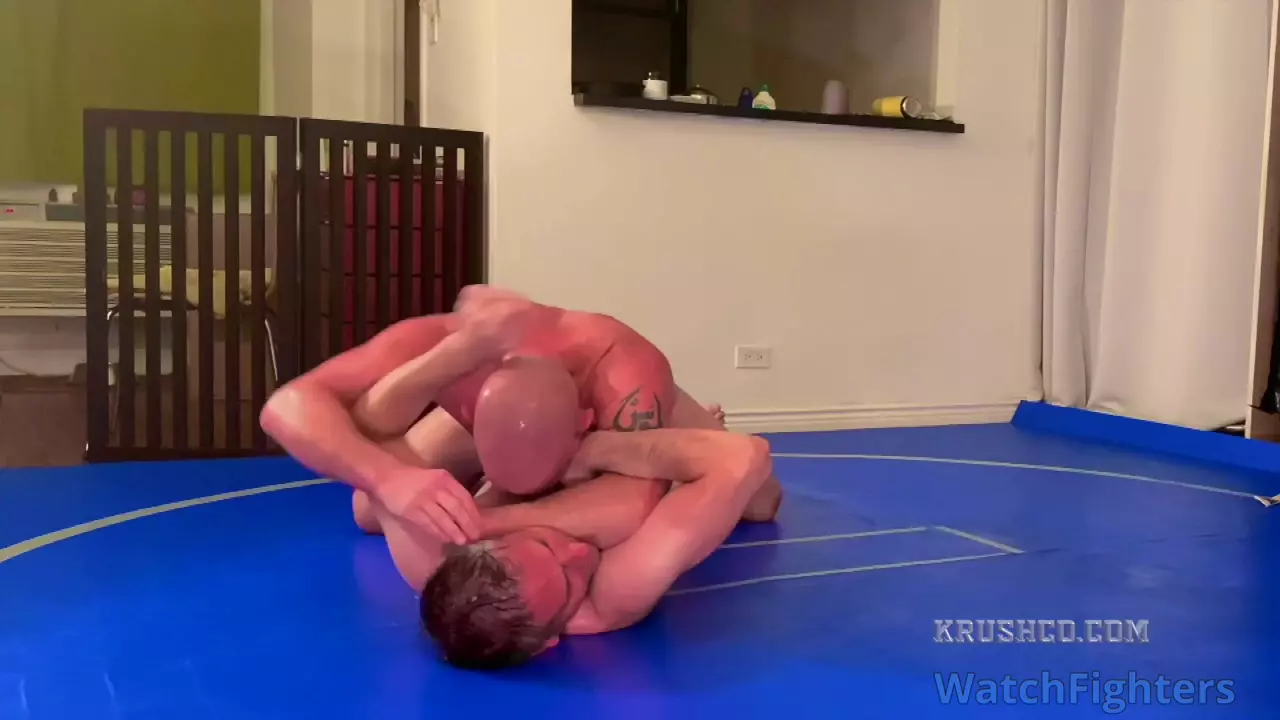 Watch this hot naked sweaty submission wrestling match. Me and Vin lock up and engage in some brutal bouts with lots of chokes, head scissors, ball-pounding, and more!
