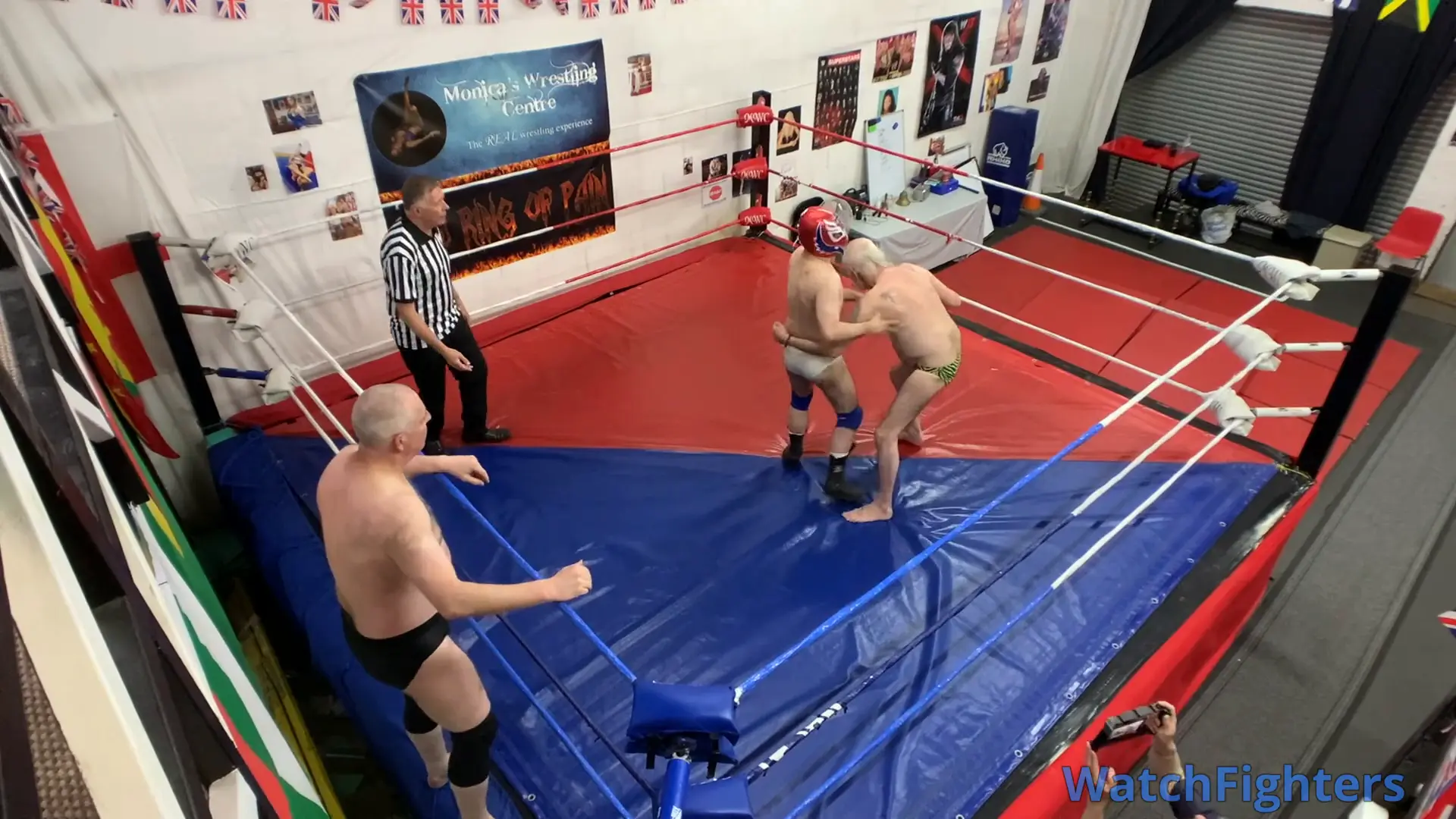 Action from a World of Sport style pro wrestling handicap (2v1) match featuring Ady v London Latino & Stephen at MWC London.