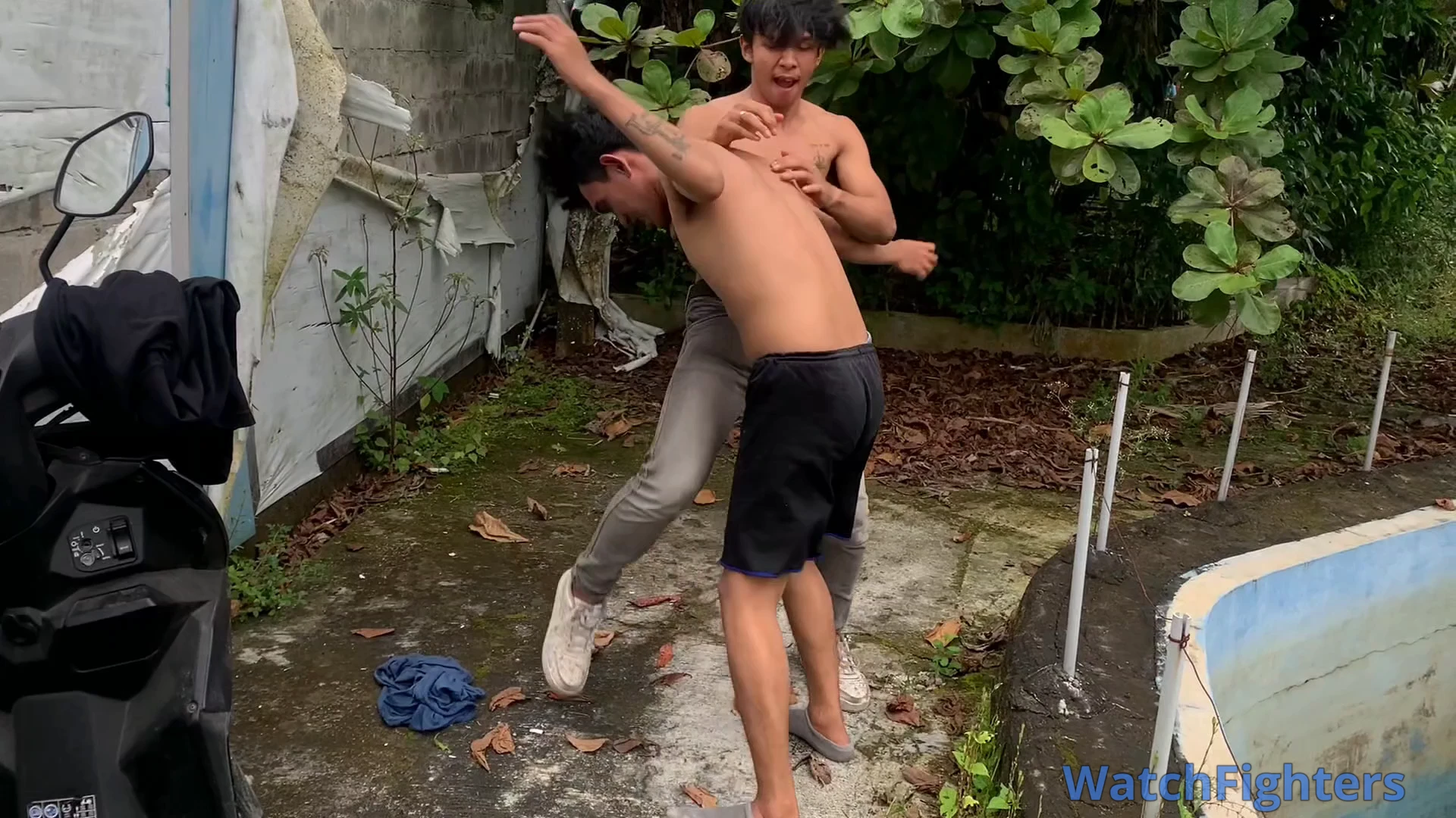 Traveling on his new motorbike, a boy meets someone who turns out to be a gangster in the village. The boy did not have time to defend himself and ended up badly beaten by the gangsters. Several locks were used to boy the boy and in the end the boy was helpless.