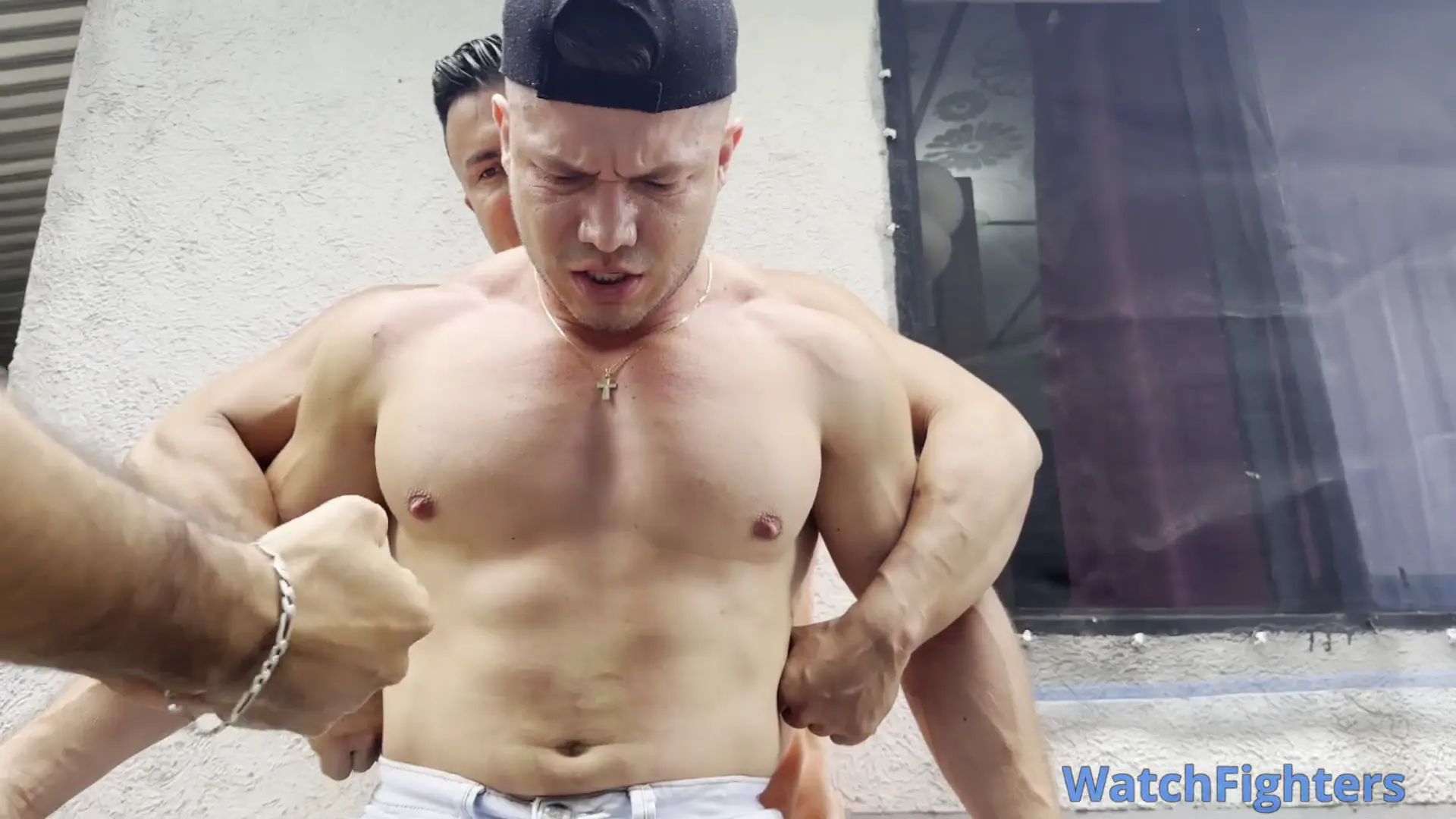 Español: Dos trabajadores de la construcción exigen que Steve Cass haga su trabajo por ellos mientras ellos se relajan. Cuando Steve se niega a hacerlo, uno de los hombres lo agarra de los brazos y el otro le da una lección golpeándole los abdominales hasta que queda de rodillas jadeando por aire. Más tarde, los dos hombres regresan para ver si Steve ha hecho su trabajo. Cuando ven que no lo hizo, le dan un puñetazo en el estómago y le dan otra paliza en el estómago.