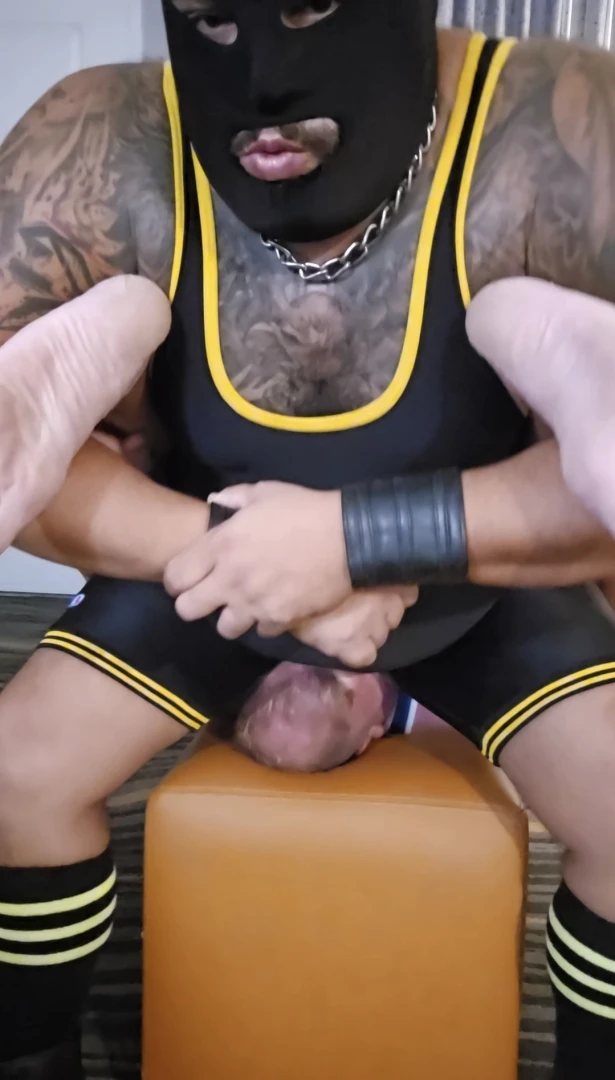 303 pound Monster Muscle Bear uses his weight to crush me on hard furniture blocks so he can better mount and stabilize his punishment.