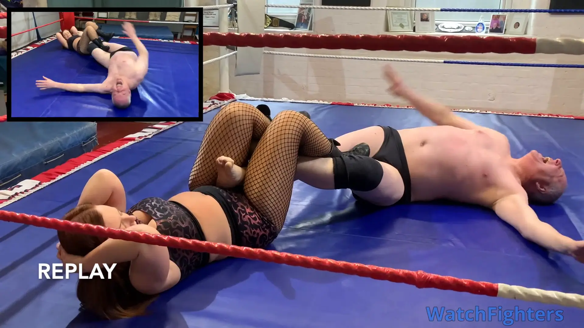 Action from a pro style mixed re-match featuring pro female wrestler Eva v Stephen held at TWF Manchester.
