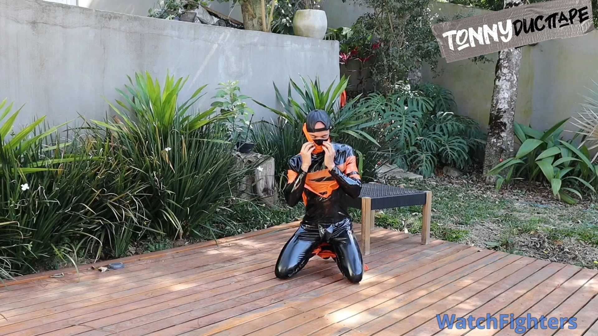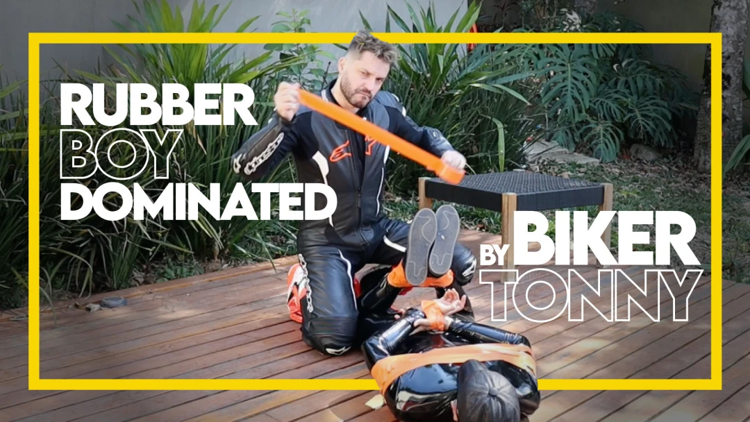 Rubber Boy dominated by Biker Tonny Tape (1080p) Gay Bondage - Gay Domination - Rubber - Tape Bondage - Hogtied - BDSM