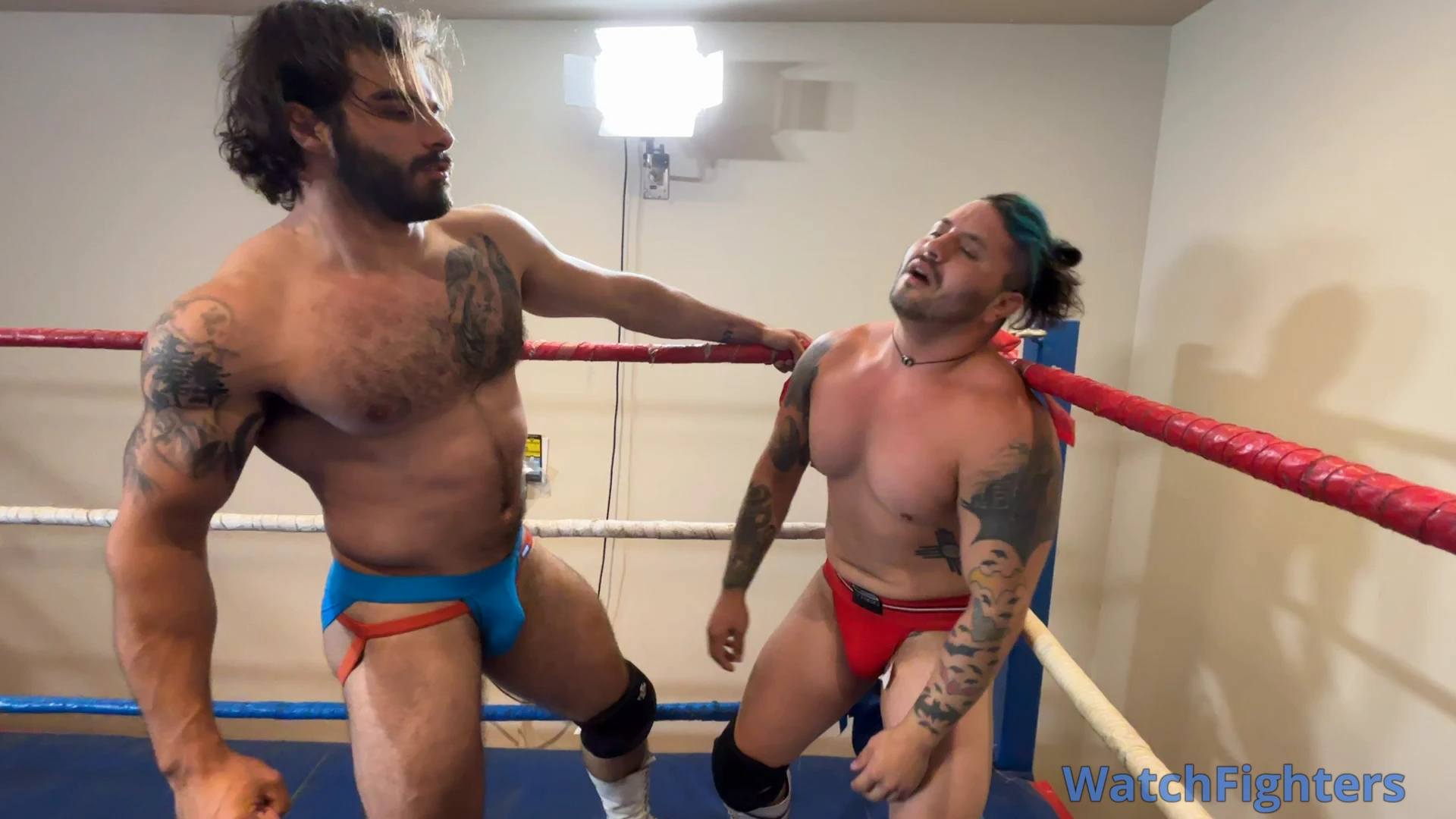 Move list: thong wedgie, stomps, punches, gut bashes, strikes, corner work, knee drop, ankle attacks, head vise, hand attacks, body slam, roll-up pin