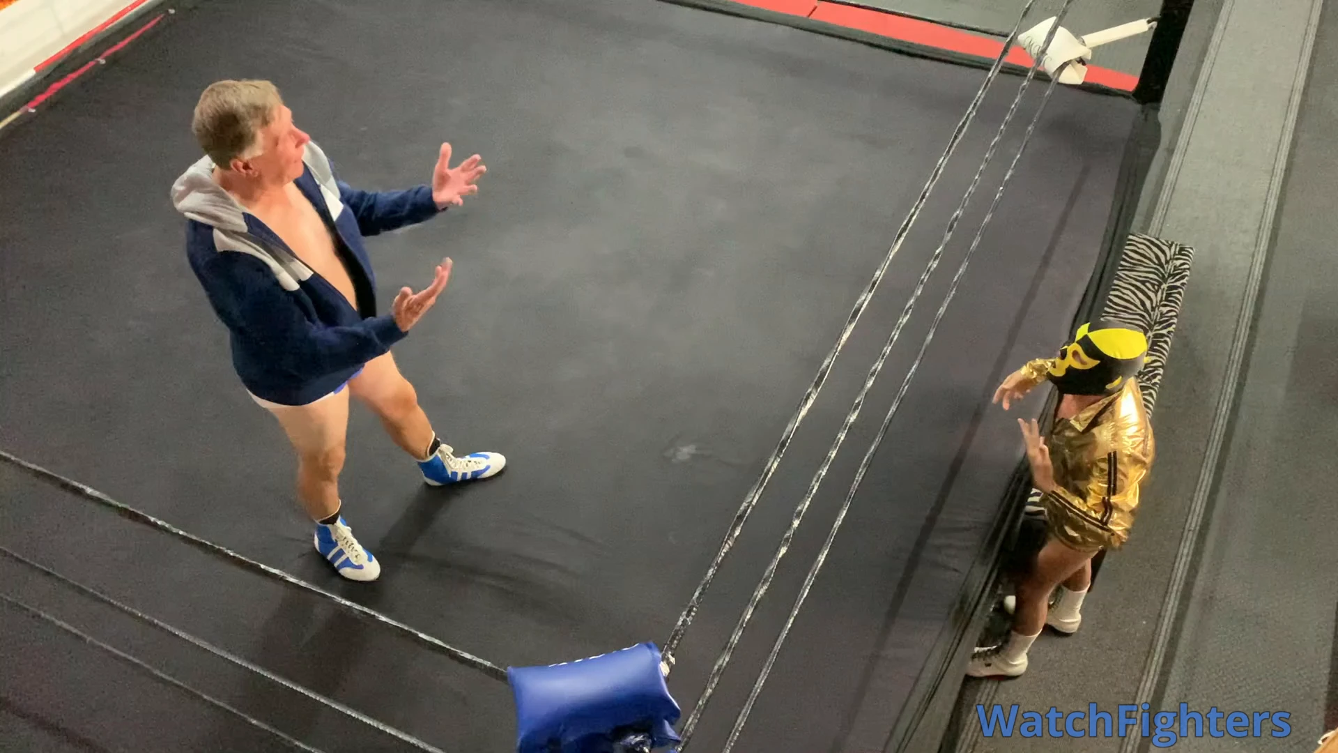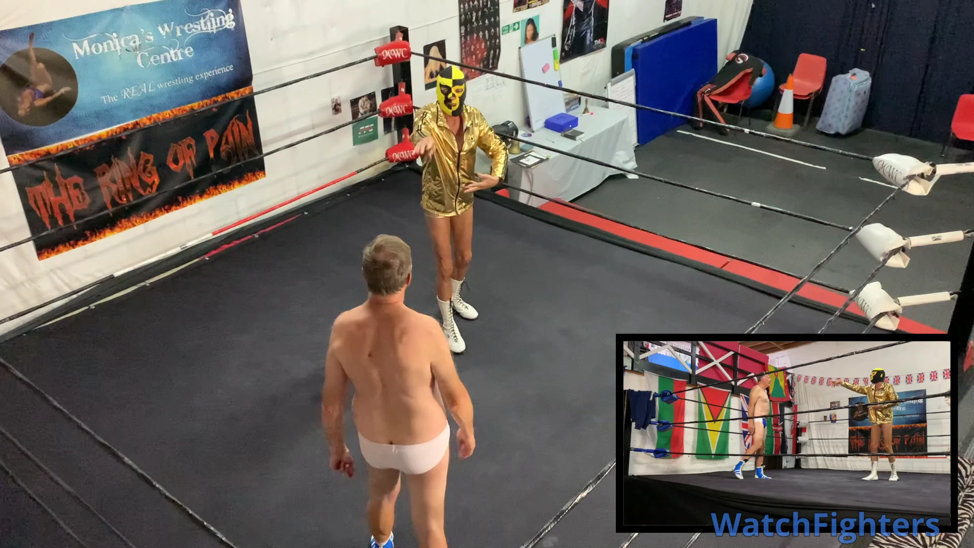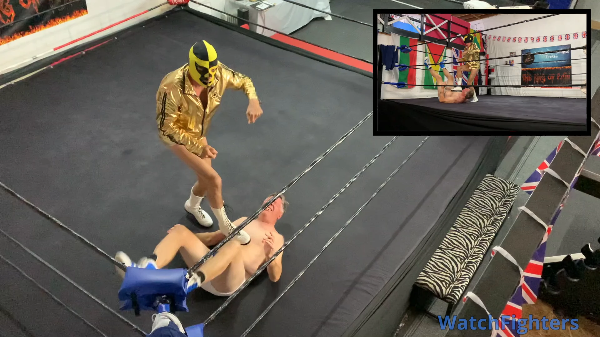 Action from a pro style wrestling match featuring the hooded menace, Sparkle v Chris Nelson London.