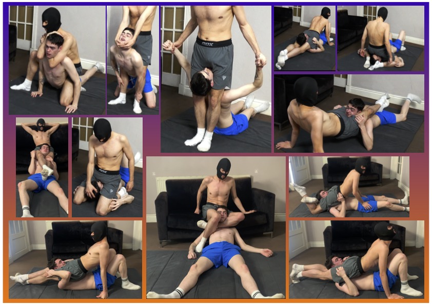Ryan chokes Tyga with head scissors and chokeholds.