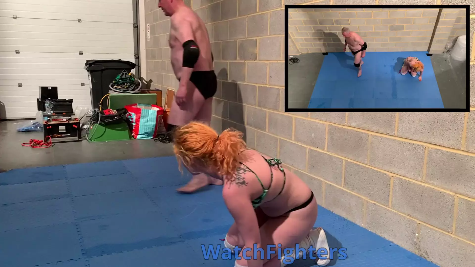 Action from a mixed wrestling match featuring Rosie Gia v Stephen held at BH7.