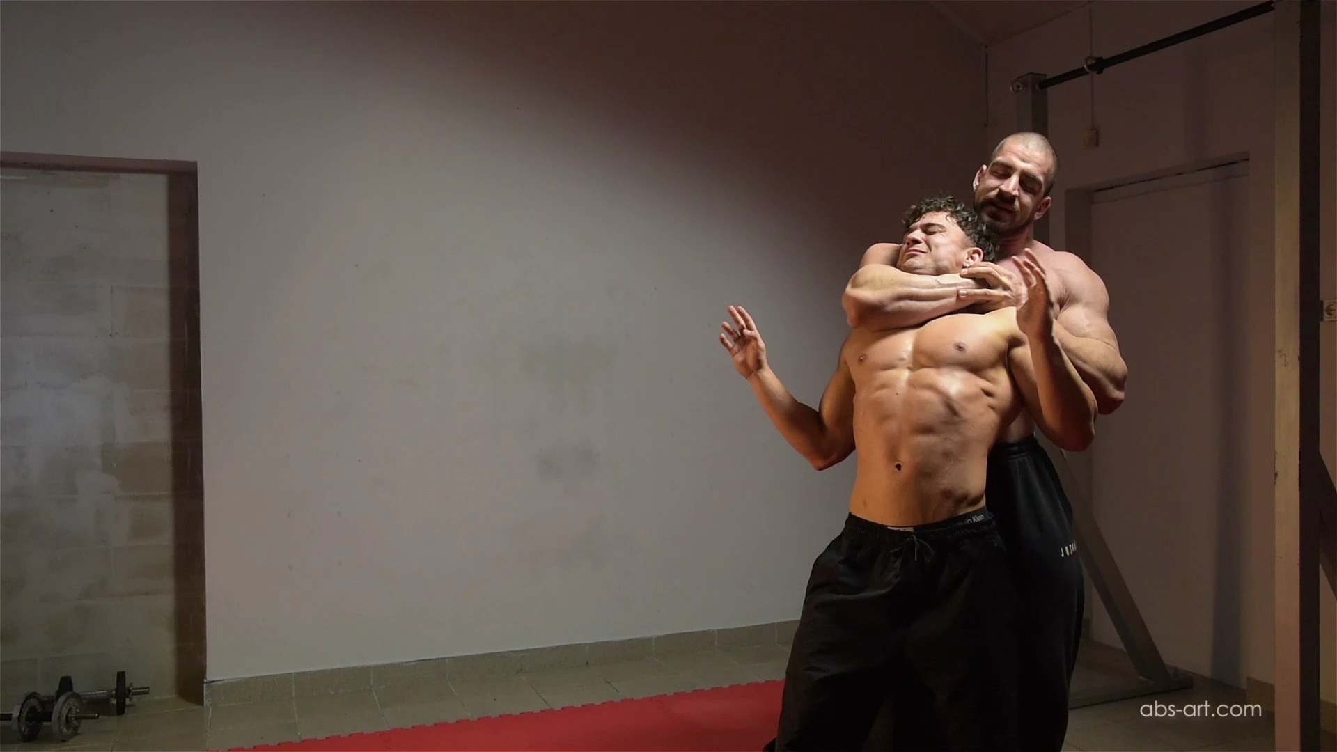 Dominant Igor is playing with small ripped Hugo like a ragdoll