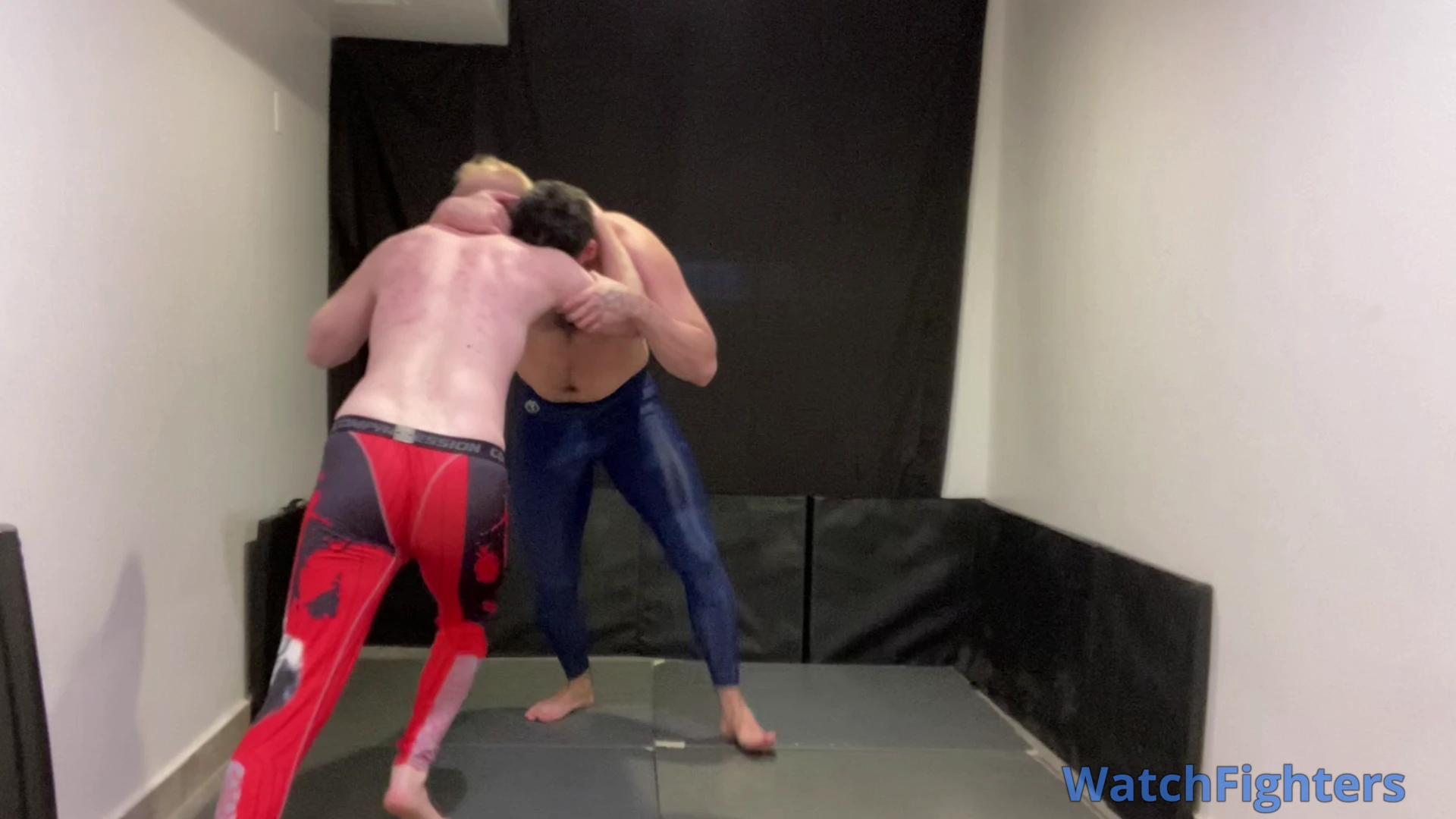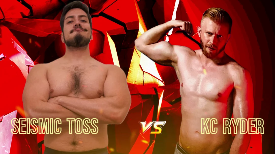 The Seismic Toss and KC Ryder face off in a basement mat room battle. These studs can't keep their hands off each other as they alternate between brutal submission holds and sensual domination. Neither can barely be contained by their spandex tights. This match is a total grind-n-grope, and the inevitable first of many between Seismic and KC.