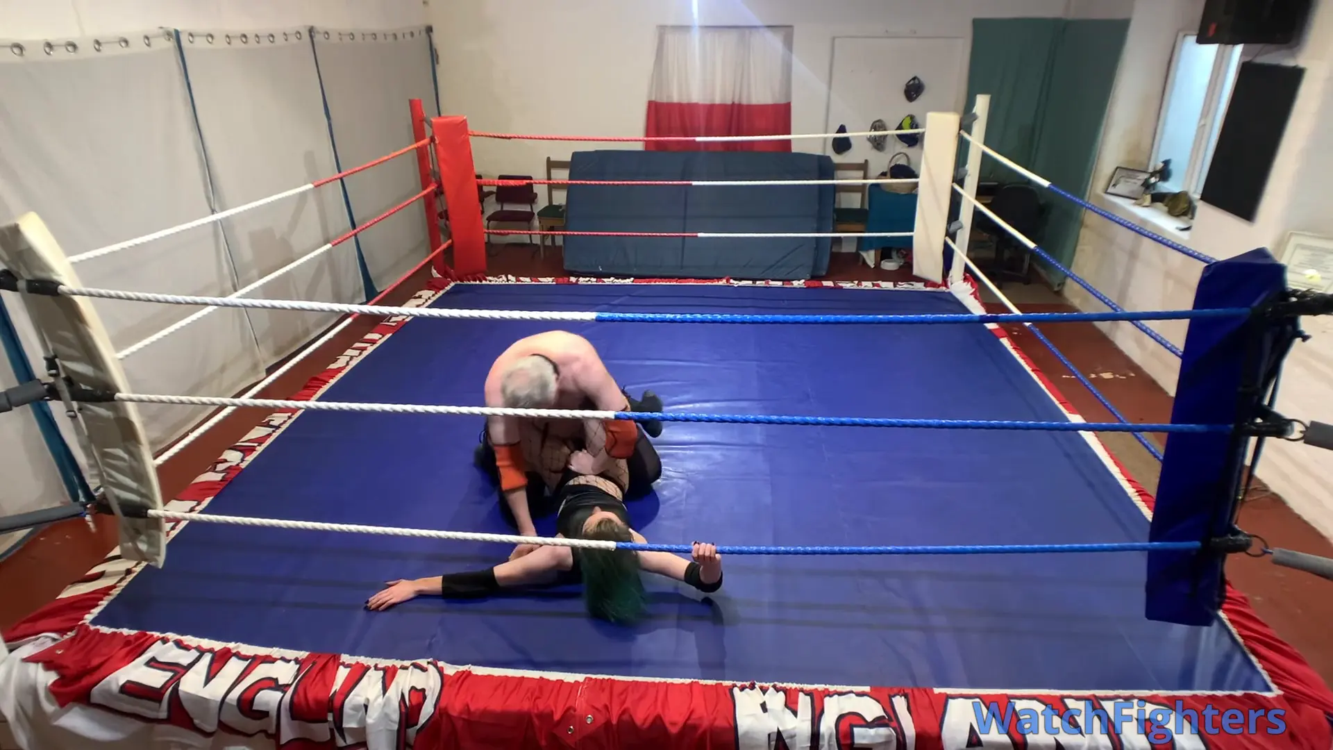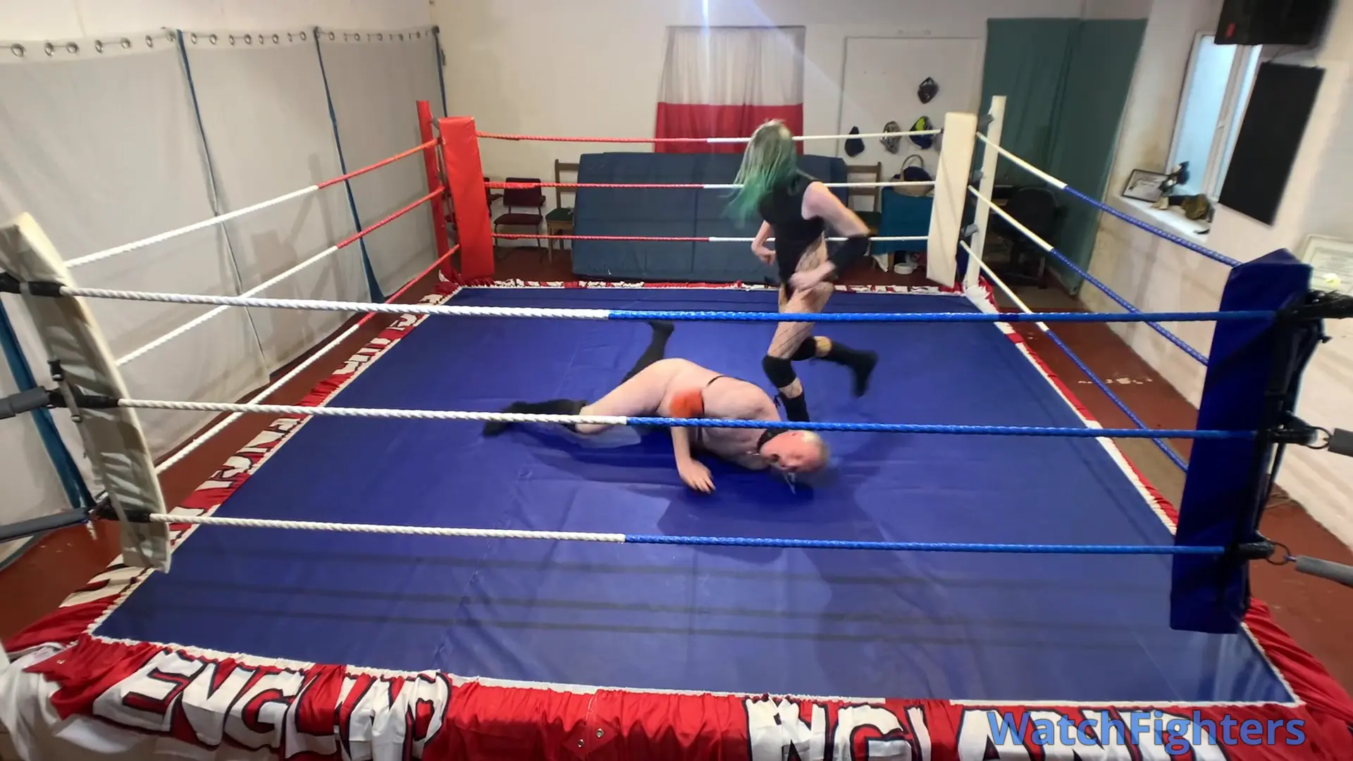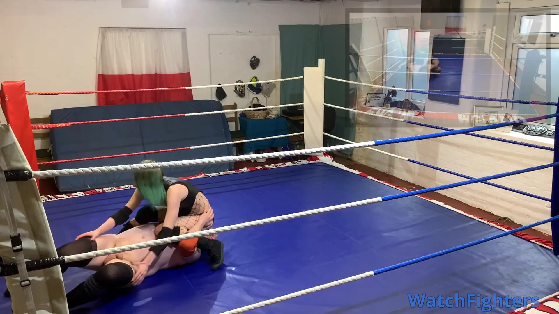 Carrying on from a long running feud between them, action from a pro style (CFNM) mixed match featuring the trans female Skyler v Stephen held at TWF Manchester.