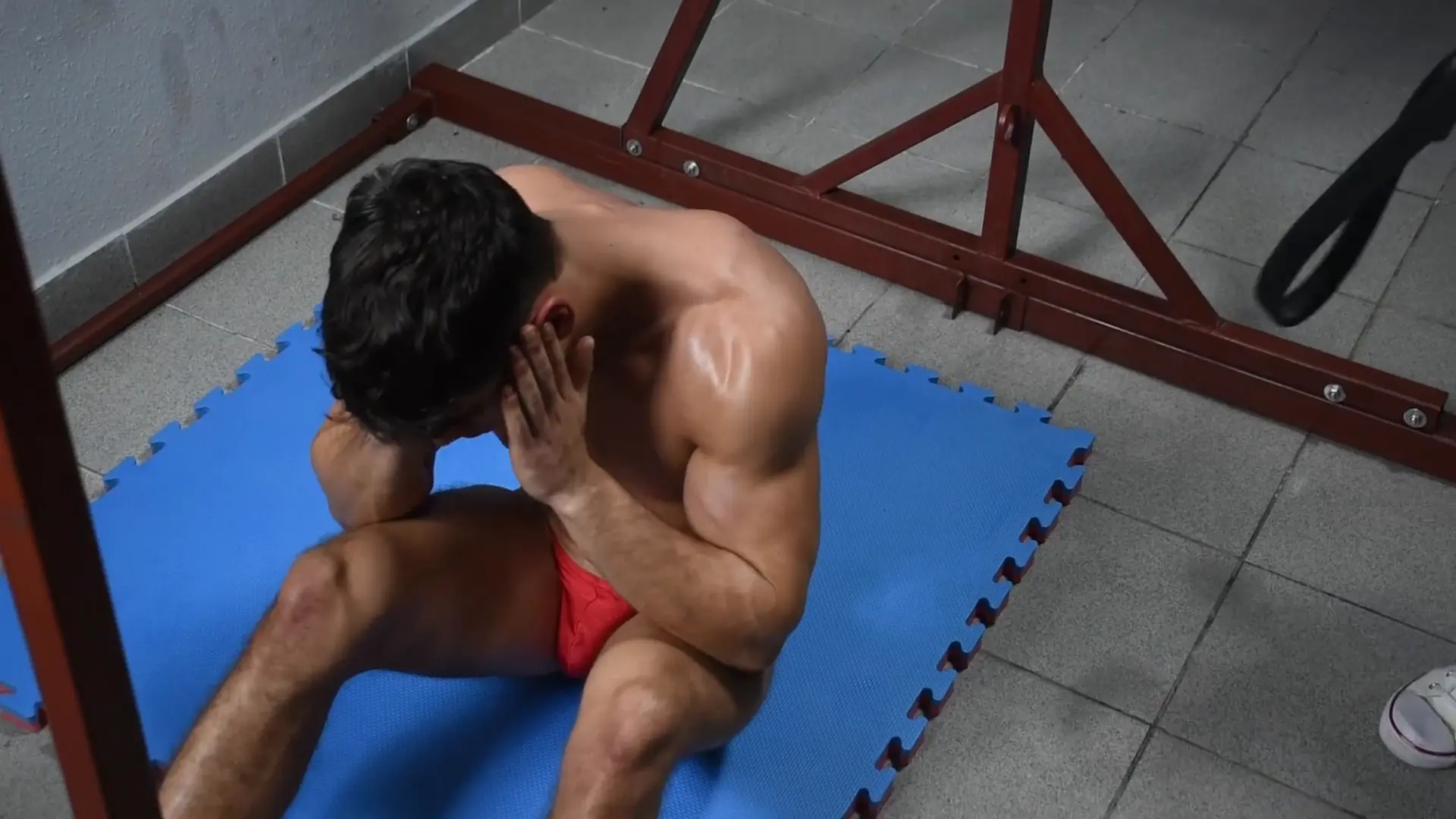 More dialogue and more hands-on interaction. If an Abs Art fan had Bruno stripped, sweaty and at their mercy, they’d be exploring every inch of his body. That little red thong would be getting stroked and stretched and maybe peeled down a little. I think we’d all be happy to see Bruno’s pubes, for instance. Or maybe a glimpse of something else. And who wouldn’t mind the teasing thought that Bruno’s only item of clothing might get torn in a struggle, or get ripped off completely?