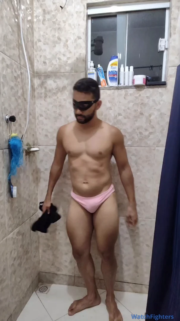Gay afeminado fazendo striptease no banho e se exibindo