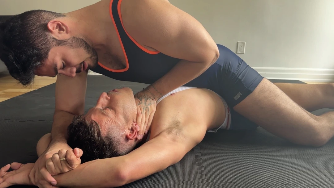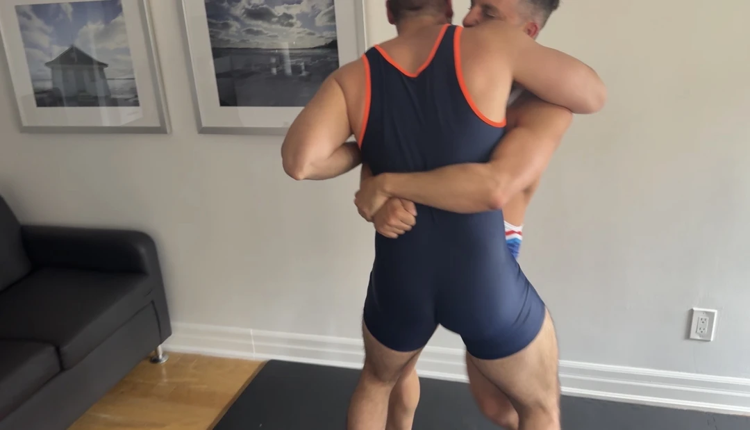 Their closeness makes the struggle electric, bodies pressed, breath heavy. Seismic’s excitement is impossible to hide, his singlet straining as he toys with his challenger. Mickey writhes, caught between defiance and surrender, while Seismic asserts control with raw, dominating strength.