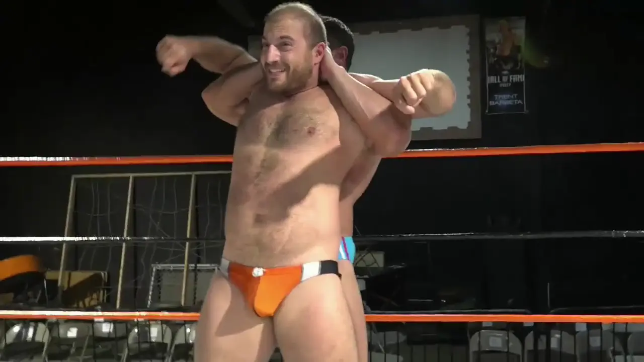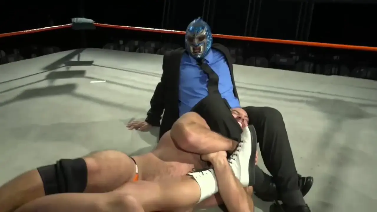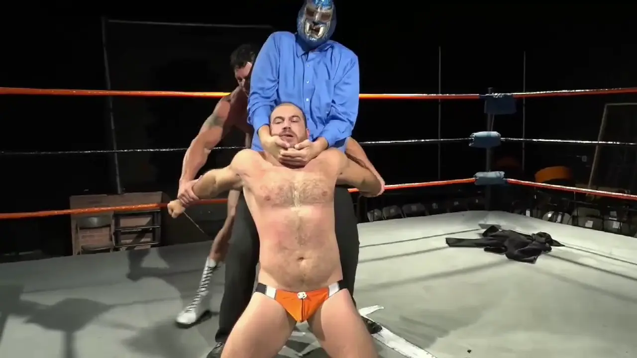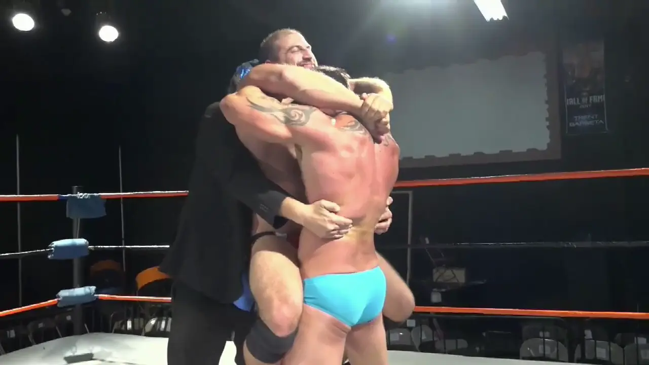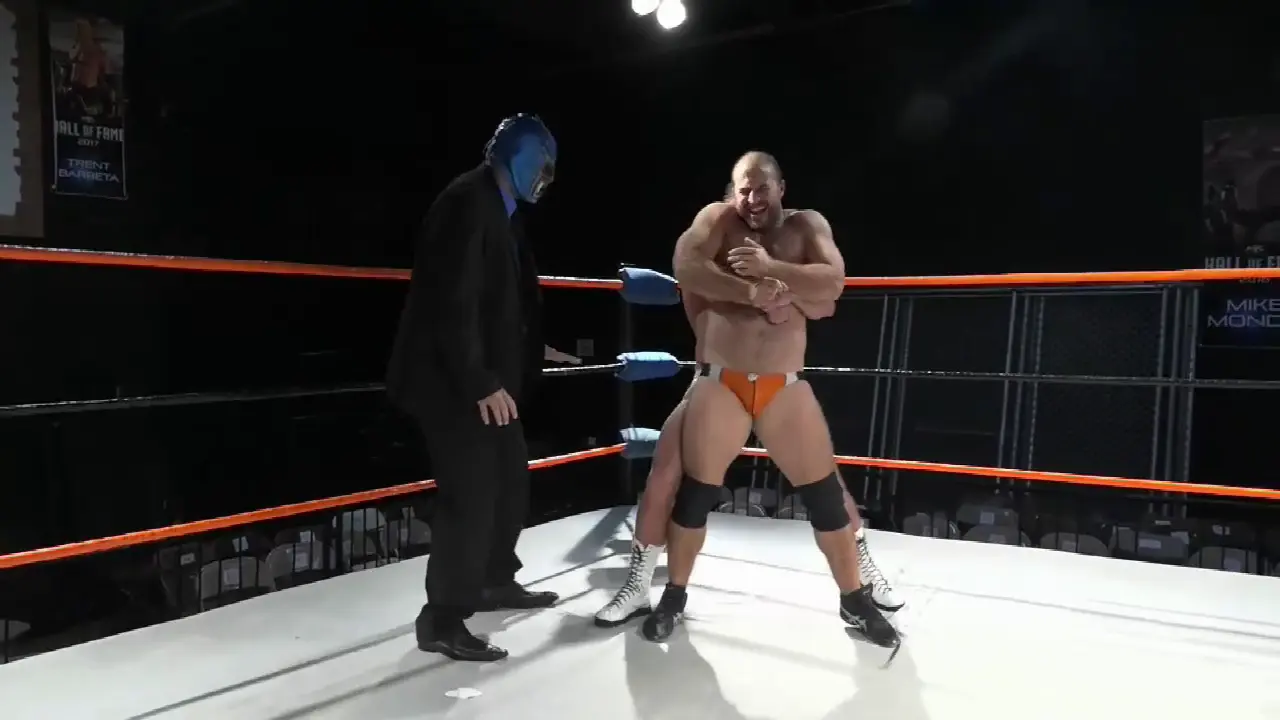 Guido came here to destroy lives and be a sex god. That changes when he gets a surprise attack from Max Quivers who slams a punching bag into the side of his head. Caught off guard Guido get into a tight headlock and led into the ring. Max throws Guido in the ring. An awaiting Joey Nux grabs him from behind and gets Guido into a bear hug. Guido tries to resist however he is abruptly choked out by Max who then slams him to the ground.