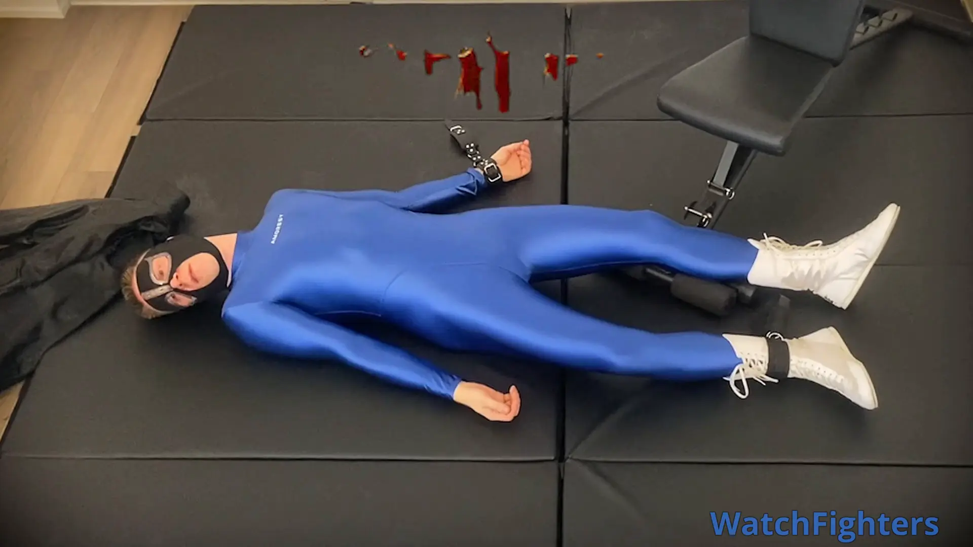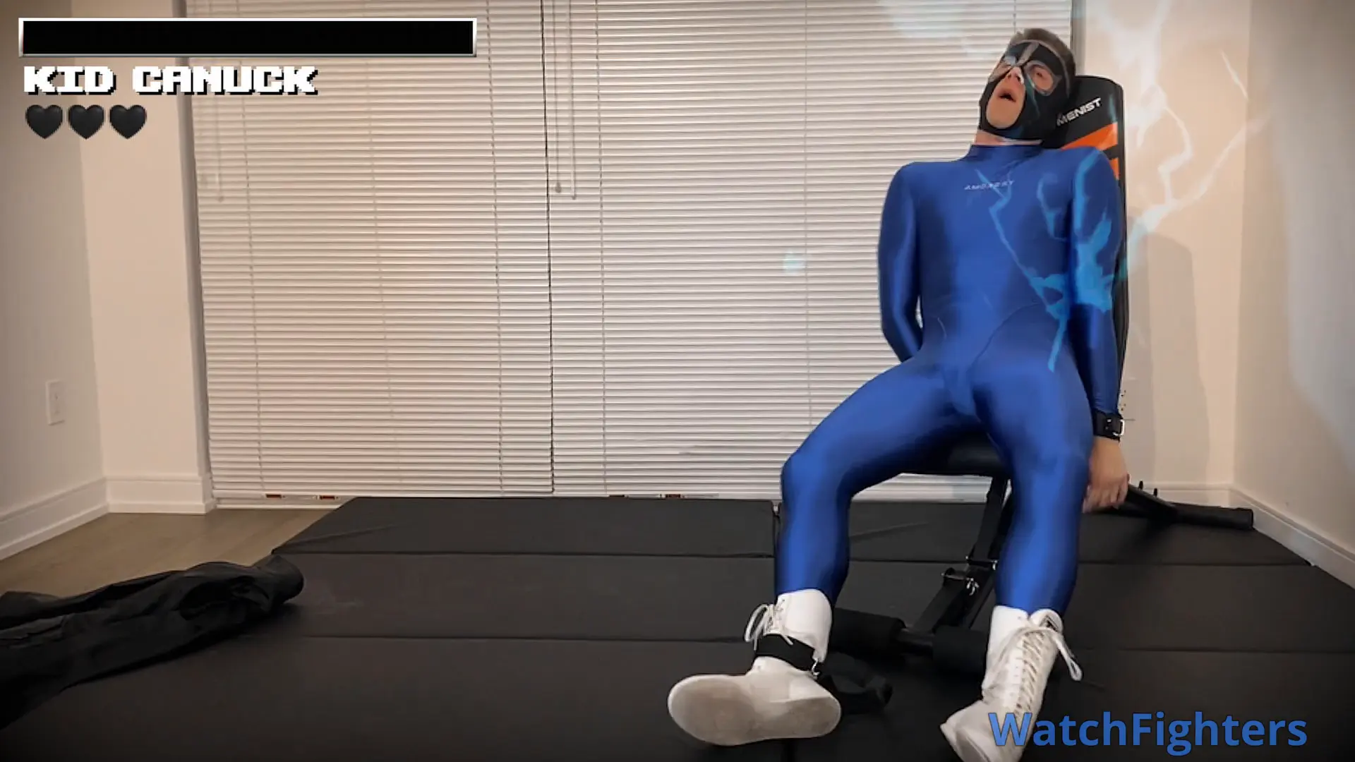 Thinking first finisher is just a ton of face blows til on the mats convulsing some but mostly twitching. Second finisher where tasered standing up, taken down and convulsing. Final finisher strapped to ‘electric chair’ convulsing, eventually slide to floor and convulse there.