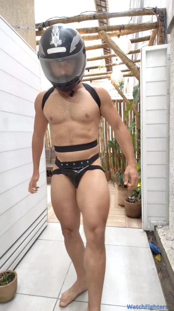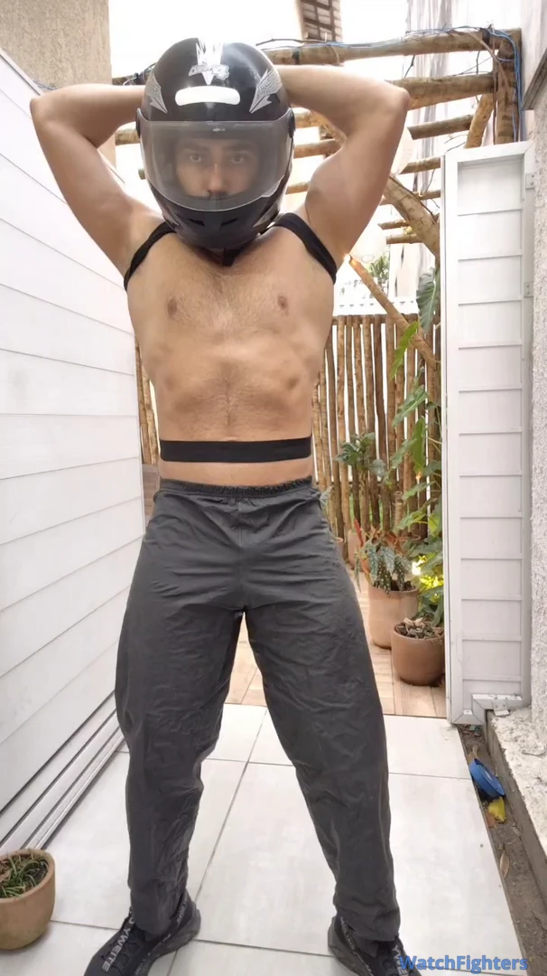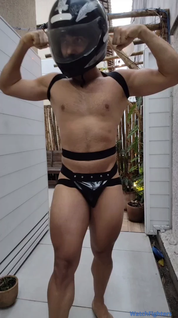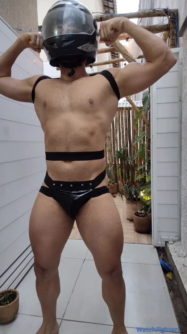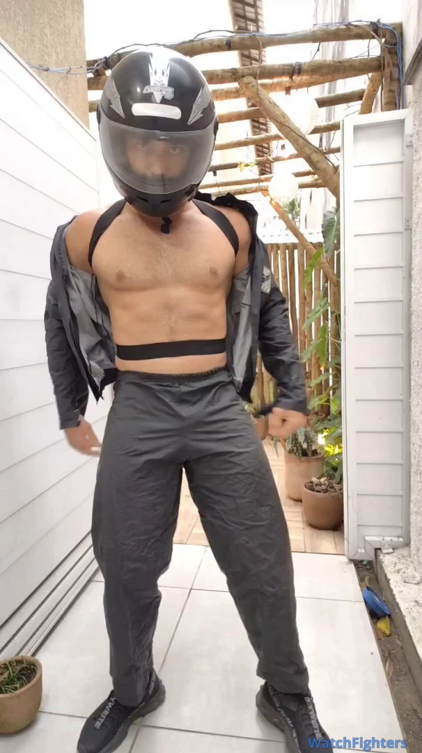 Motoboy sexy exibindo suas grandes e musculosas pernas