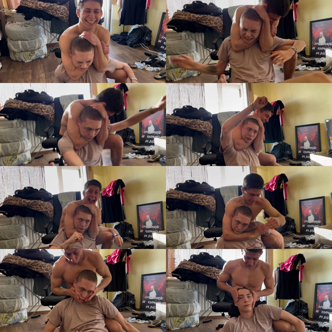 Muscular handsome Demir again torments poor Danil to the point of exhaustion. With his strong legs and arms, he makes him fall asleep. It scared Demir at first, but after he brought Danilo to his senses, he continued to play with his live toy. Enjoy )