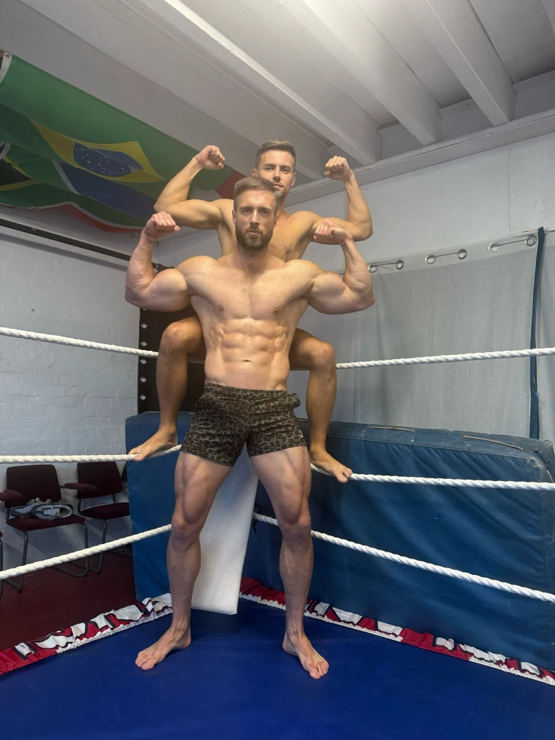 17.5 mins wrestling match in the ring - match type ‘first to cum’ as both men step in the ring who will make the other cum first. Loser has to do the flex of shame with their cum dripping from their body. Filmed landscape