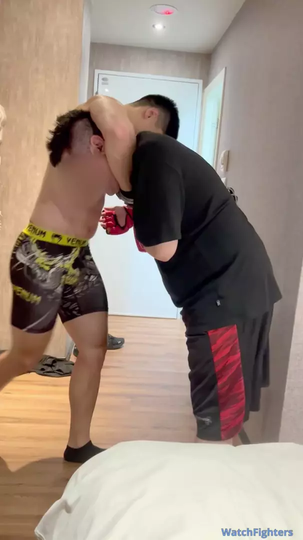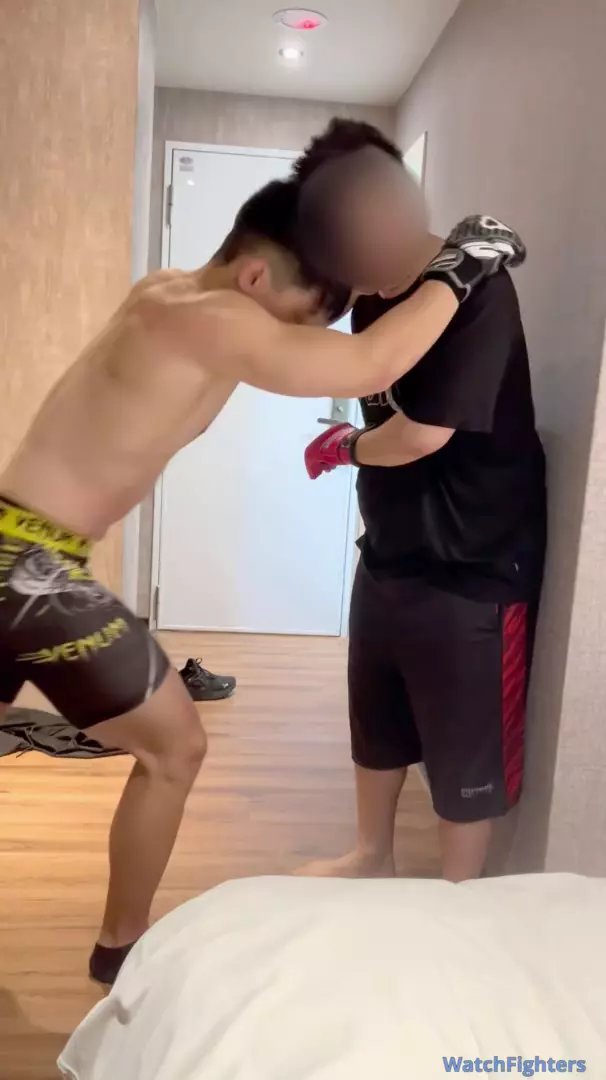 My 21y student, a bodybuilder, asks to punch the human puching bag. He won't stop punching even the bag says no .....