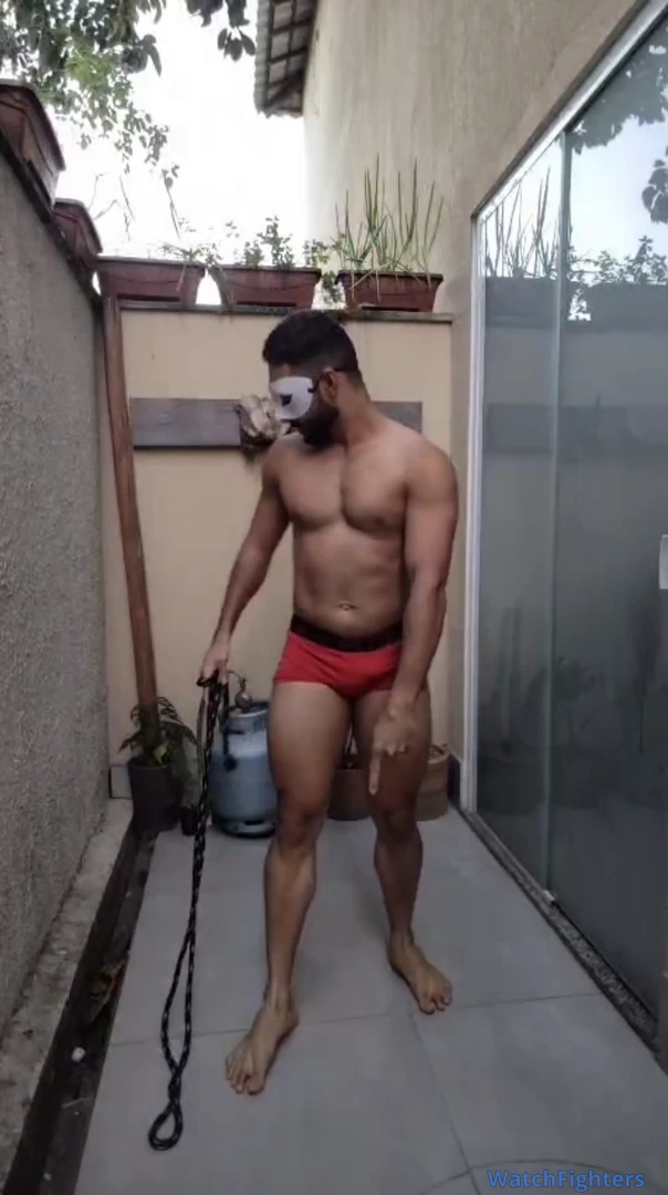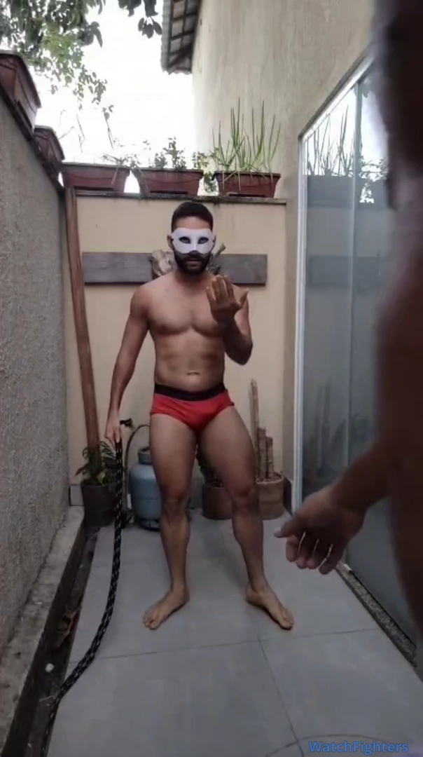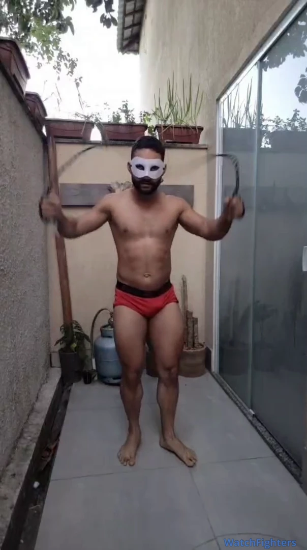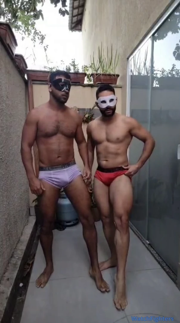 Dois machos se exercitando, pulando corda para decidir quem tem a perna maior e quem perder lambe a perna do outro