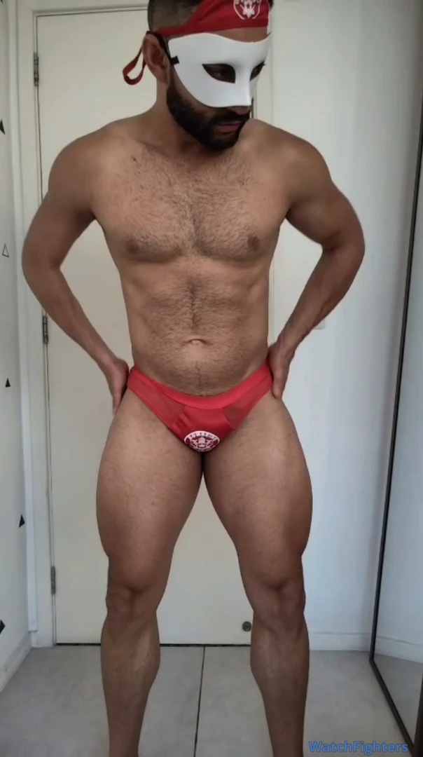 Bombeiro sexy exibindo seus grandes quadríceps musculosos