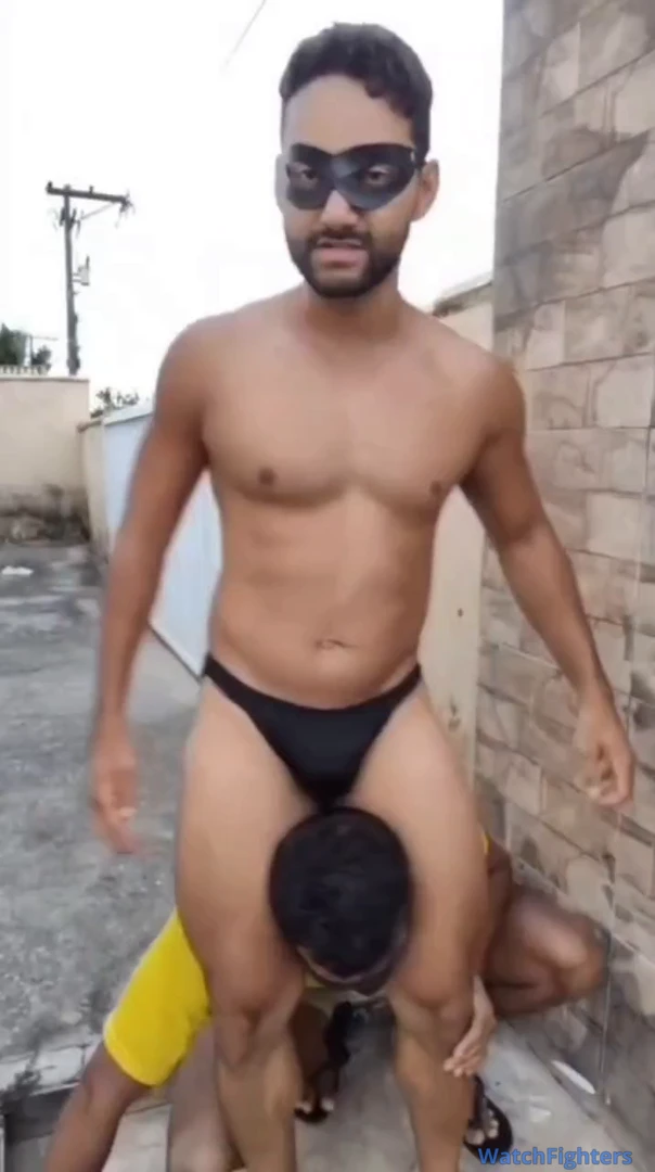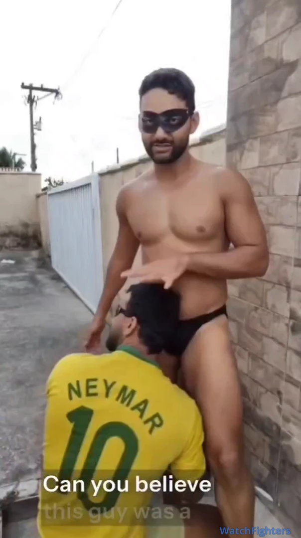 Gay afeminado fazendo o jogador de futebol de escravo depois de ter derrotado ele com suas pernas músculosas