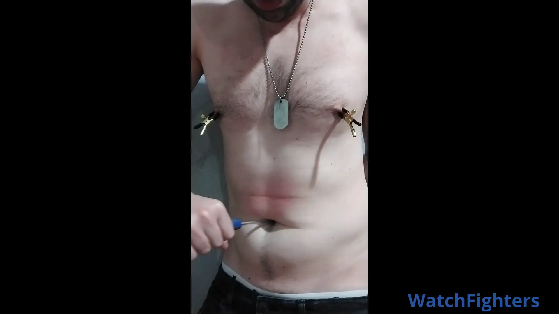 I'm playing with my abs and navel using screwdriver, fingers and fists. Deep, slow and fast stabs with some selfgutpunching, finger navel play and nipple play. Over 15 minutes of hot action.